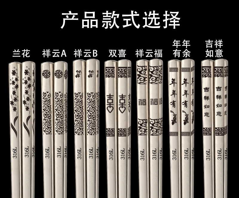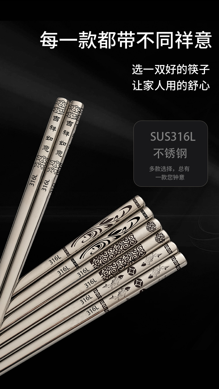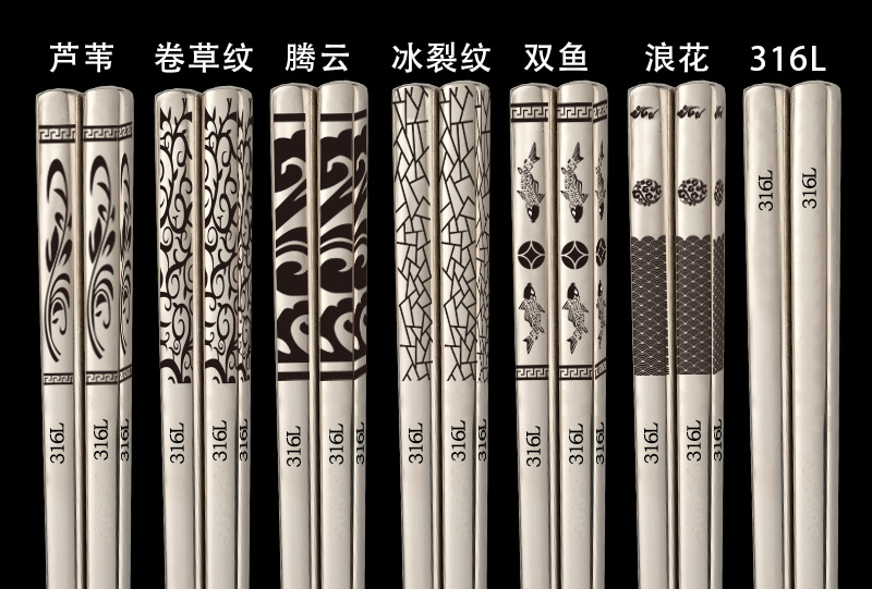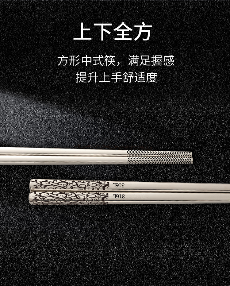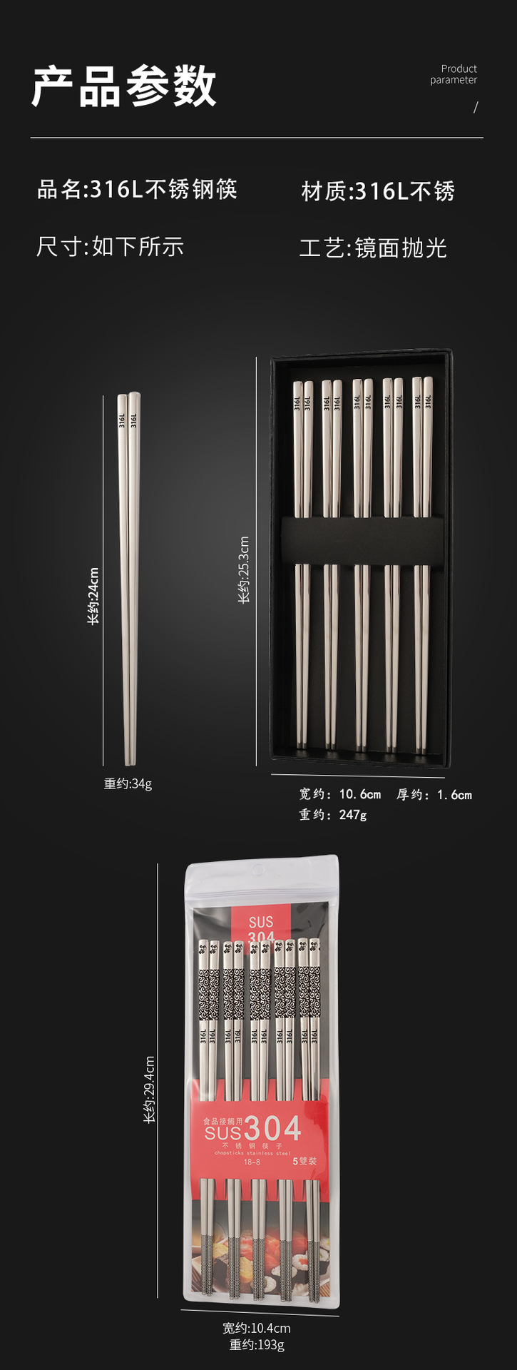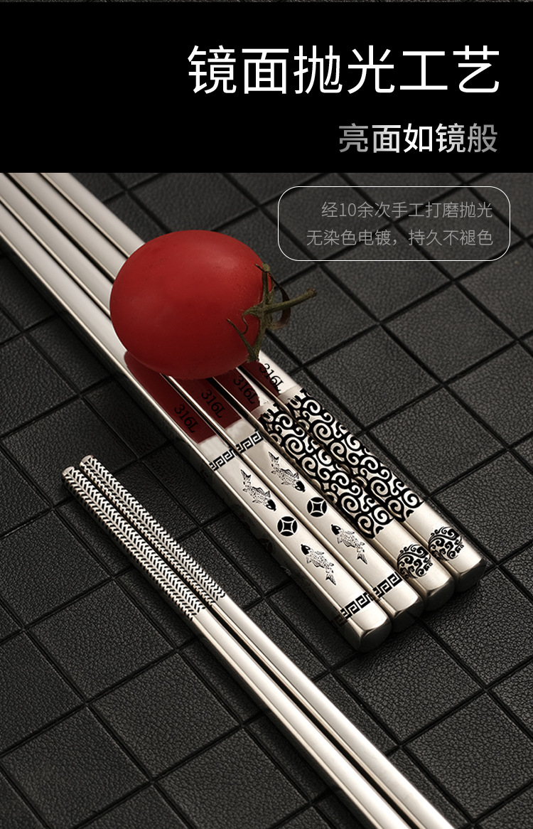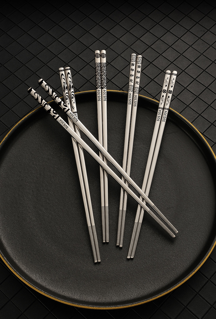 316L 스테인레스 스틸 젓가락 가정용 호텔 식기 세트 미끄럼 방지 가정용 중공 사각 젓가락 레이저 로고