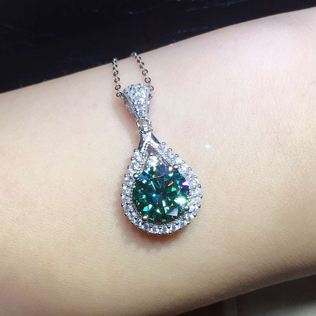 TikTok 라이브 판매 새로운 모조 몰디브 블루 및 그린 모산 다이아몬드 펜던트 8 개의 하트 및 8 개의 화살 고탄소 다이아몬드 목걸이