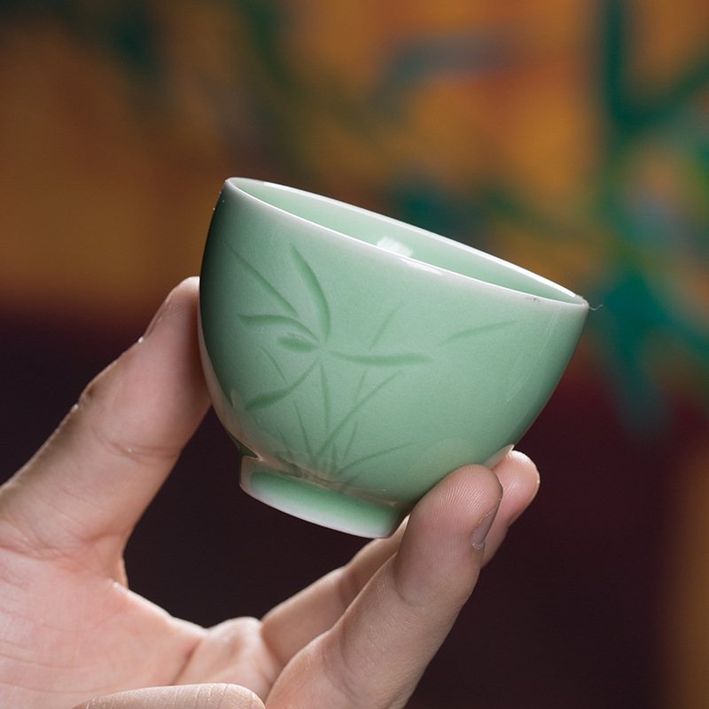 Longquan 청자 차 시음 컵 마스터 컵 세라믹 쿵푸 차 세트 차 컵 홈 미팅 난초 단일 컵 차 그릇