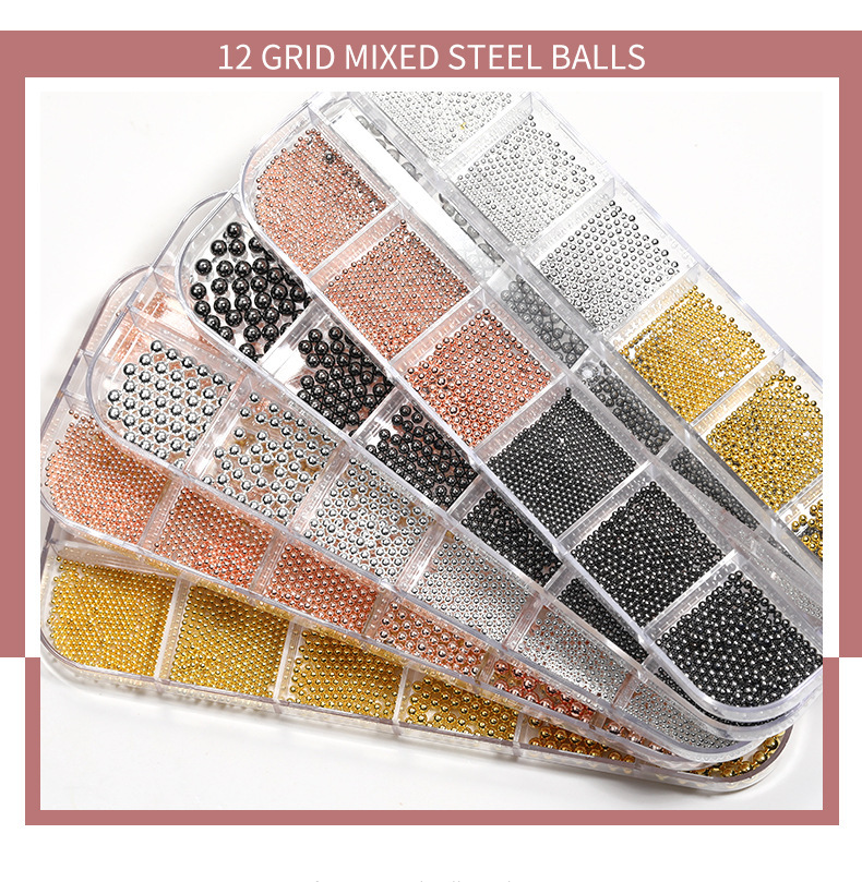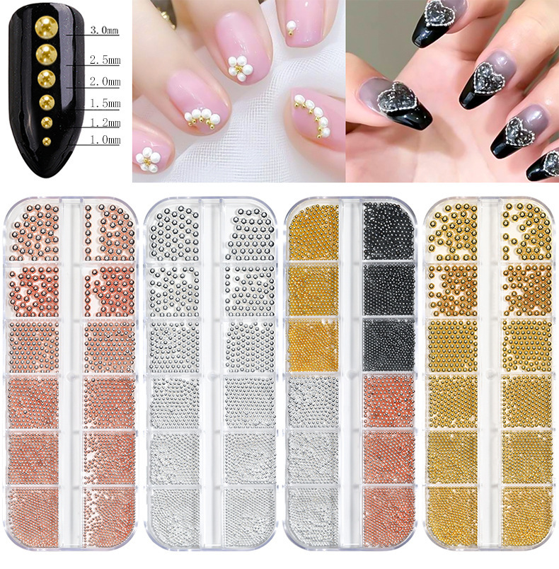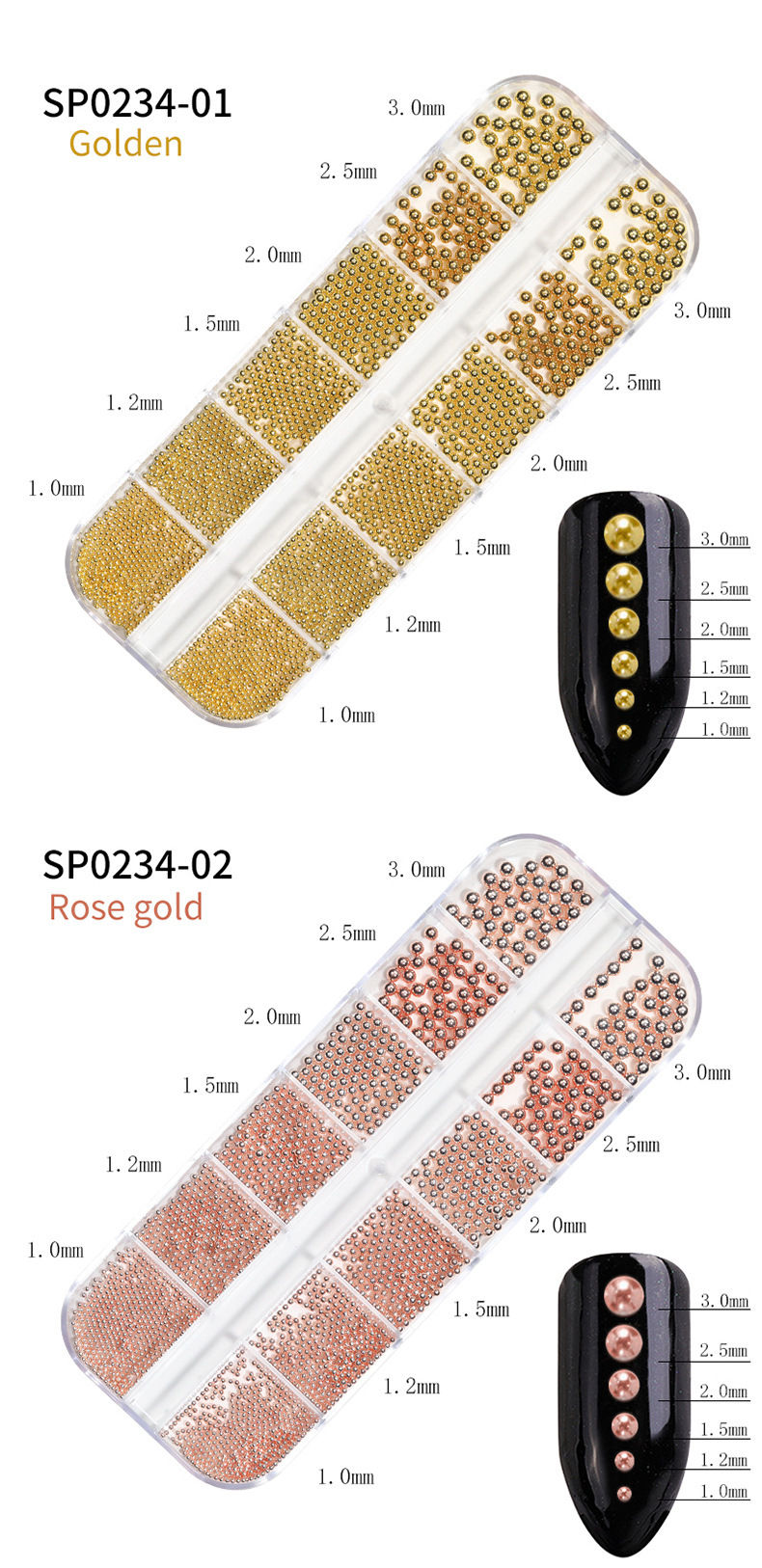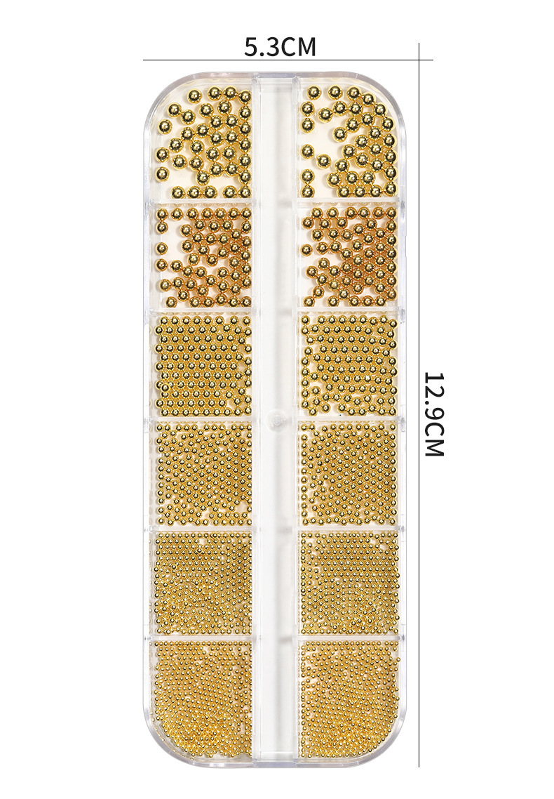 네일아트 장식용 작은 스틸볼 금색, 은색, 로즈골드 12칸 긴 박스형 금속 네일 장식 스타워즈 금박