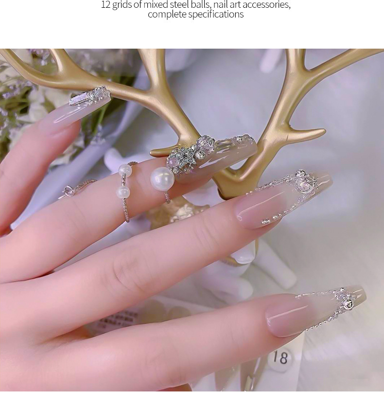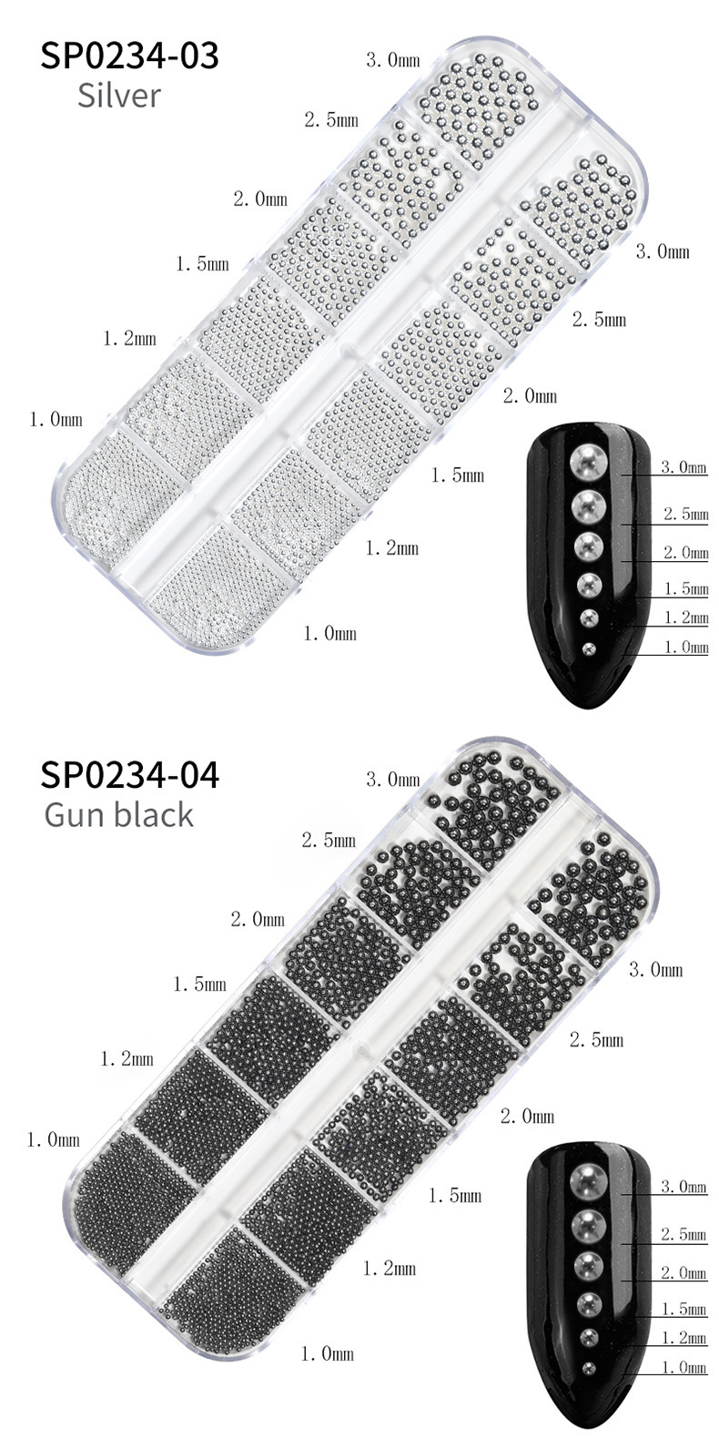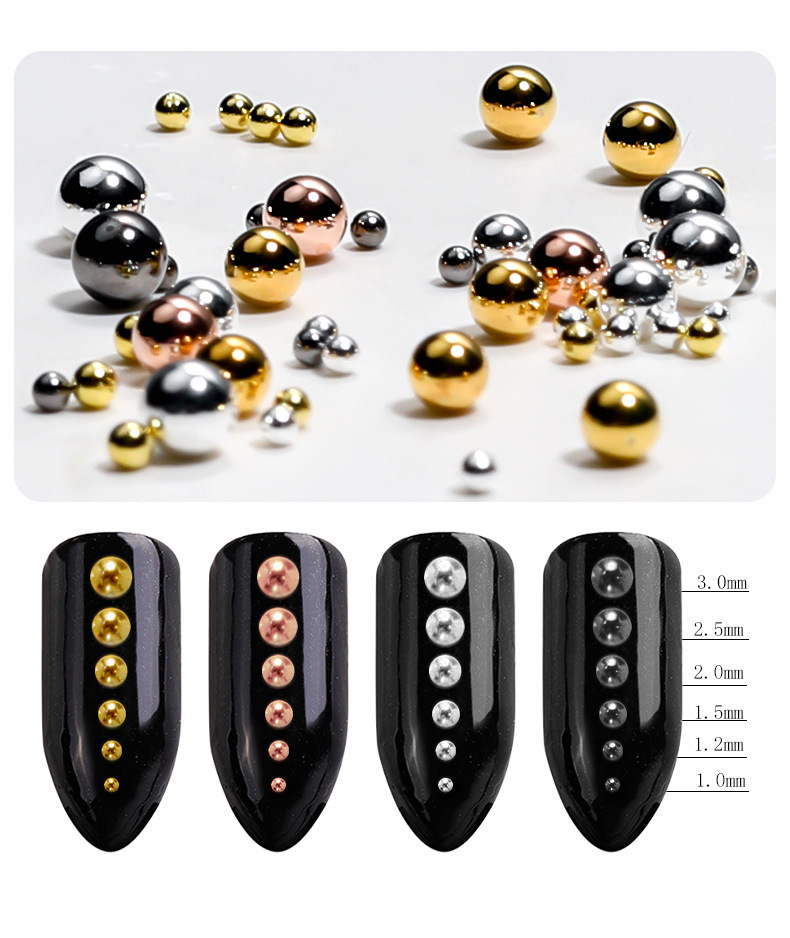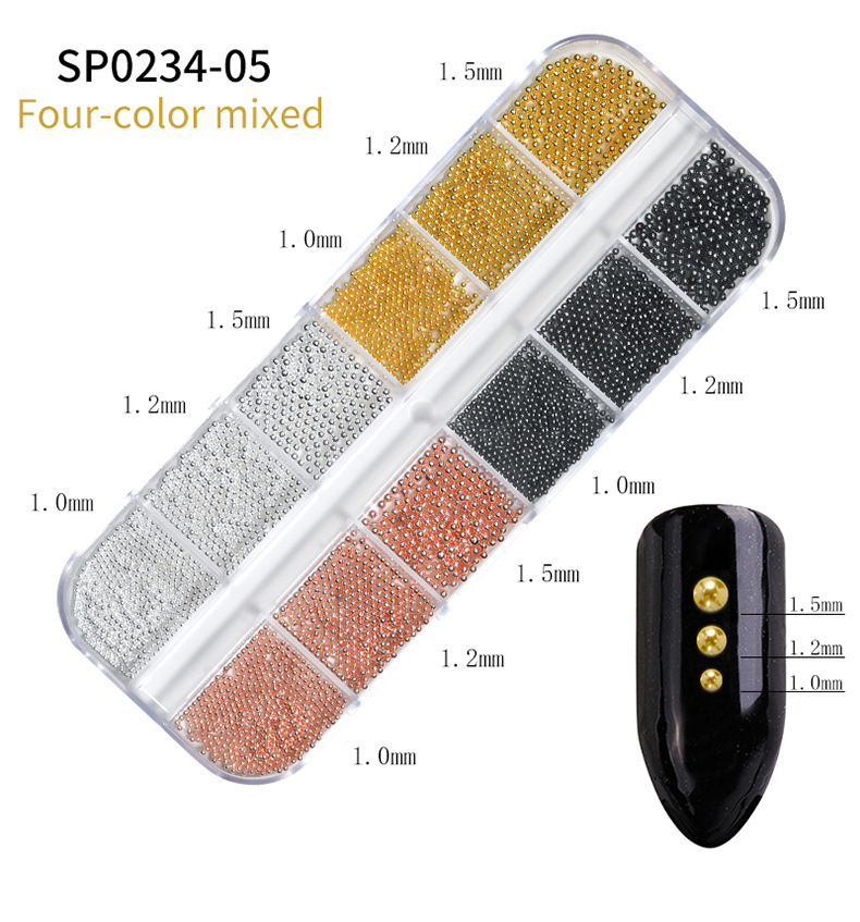 네일아트 장식용 작은 스틸볼 금색, 은색, 로즈골드 12칸 긴 박스형 금속 네일 장식 스타워즈 금박