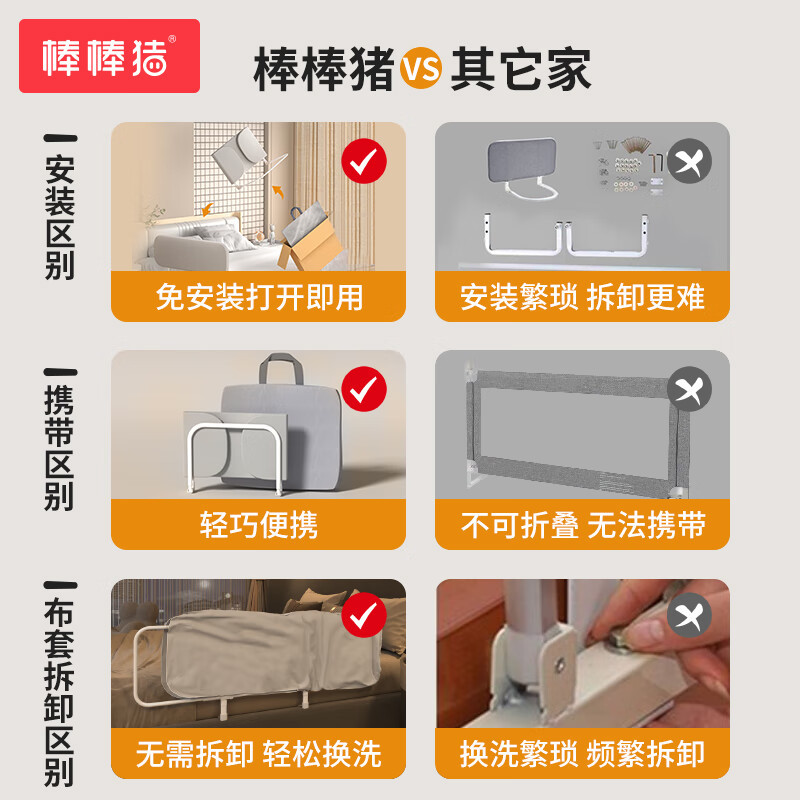 스틱 돼지 휴대용 침대 울타리 설치 무료 구아 침대 옆 아기 드롭 방지 보호 울타리 아기 싱글 사이드 배플