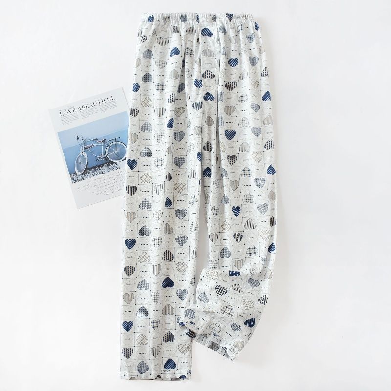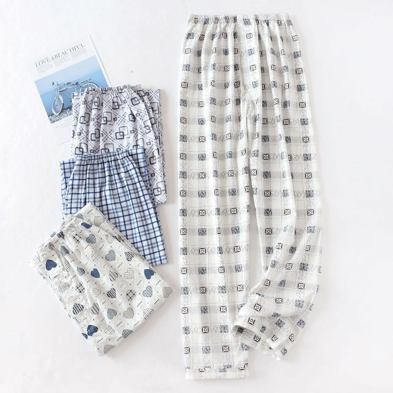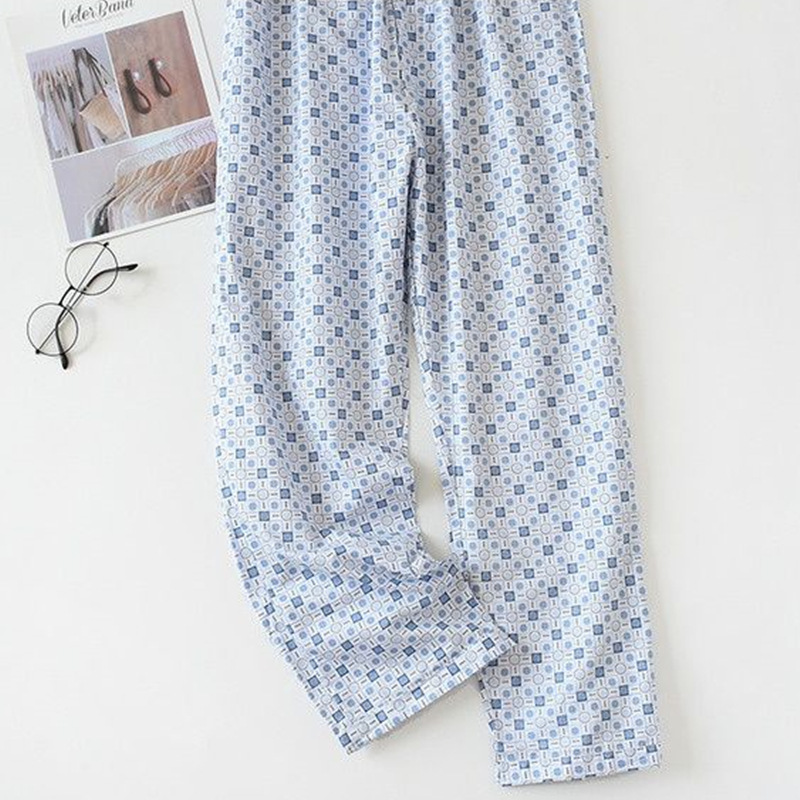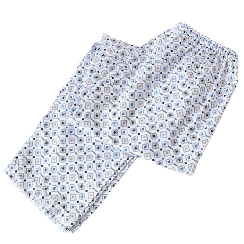 봄과 가을 여름 남성용 얇은 니트 폴리에스터 면 파자마 바지 에어컨 바지 중년 느슨한 홈 바지 긴 바지 비치 바지