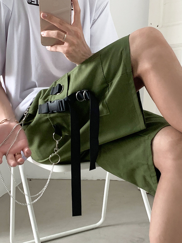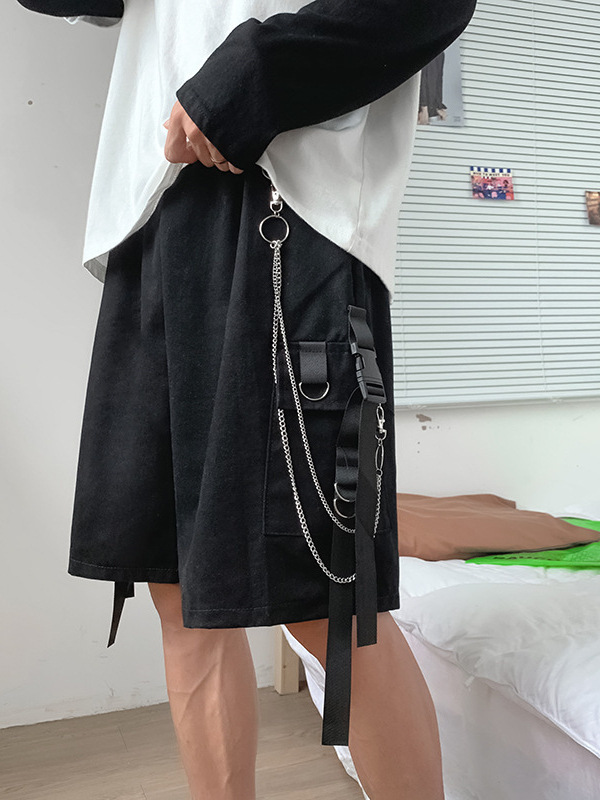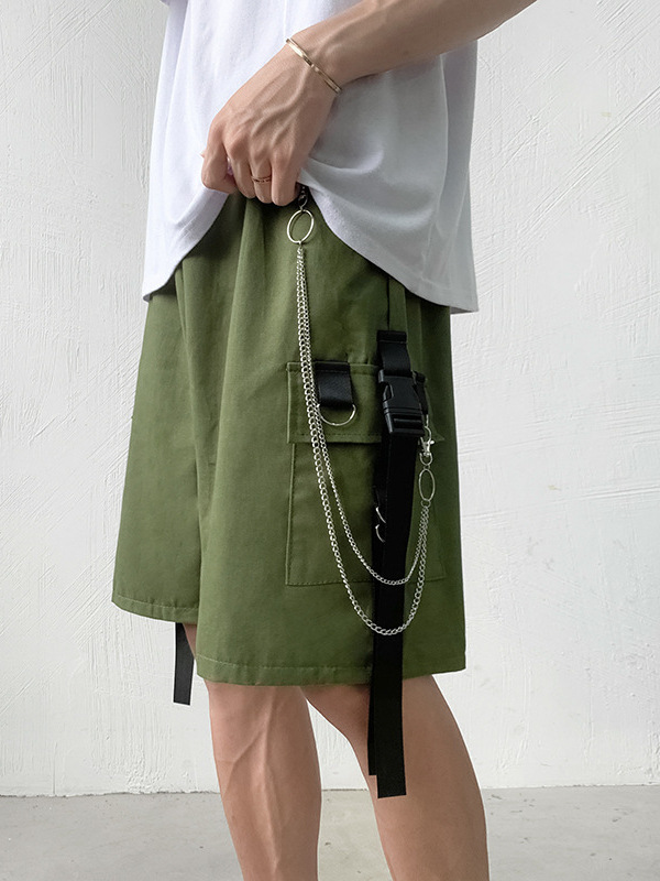 일본 툴링 반바지 남성용 여름 느슨한 스트레이트 중공업 체인 2023 최신 유행 바지 바지