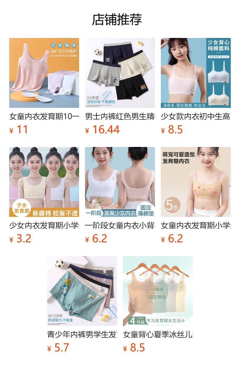 여아 속옷 발달 학생 여아 중학교 학생 여아 조끼 고등학생 속옷 브라