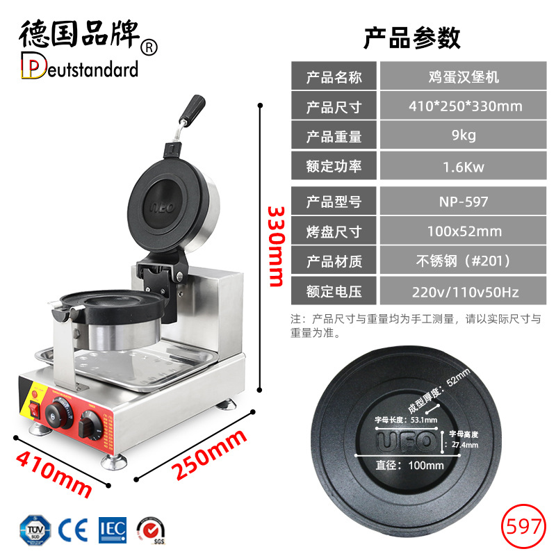 UFO 비행 접시 햄버거 터지는 샌드위치 기계 전기 버거 기계 상업 아이스크림 빵 핫 프레스 베이킹 기계