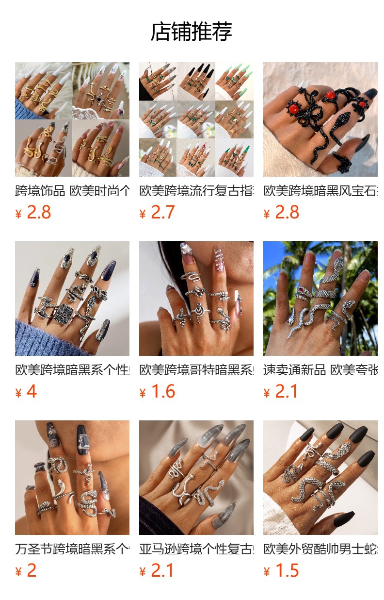 유럽과 미국의 외국 무역에서 유행하는 멋진 남성용 뱀 무늬 레트로 반지, 펑크 스타일의 뱀 모양 동물 과장 반지 세트