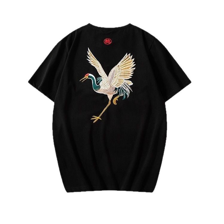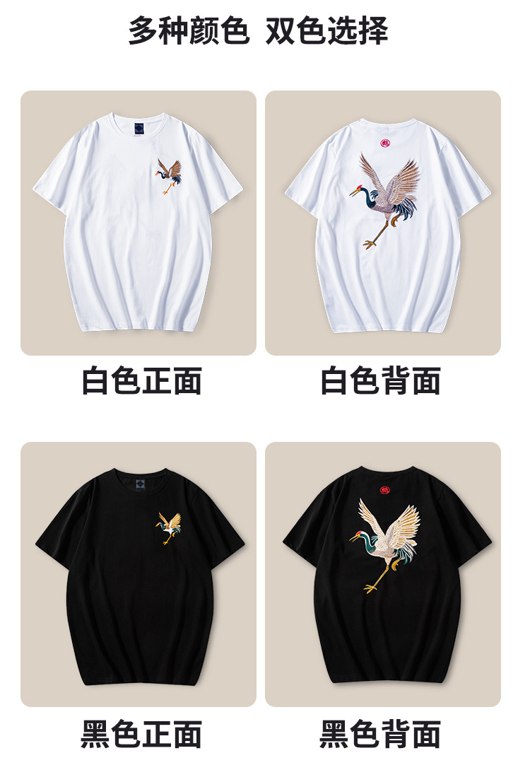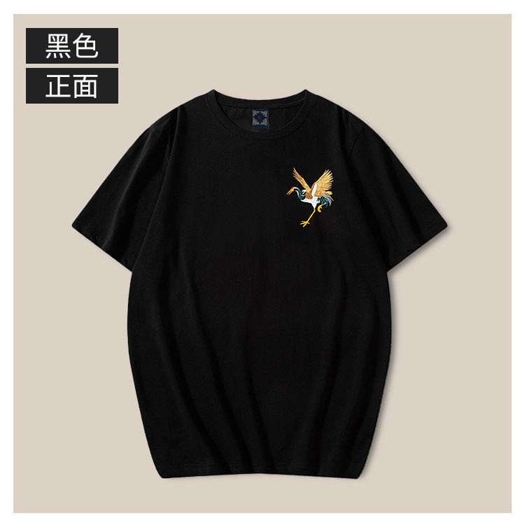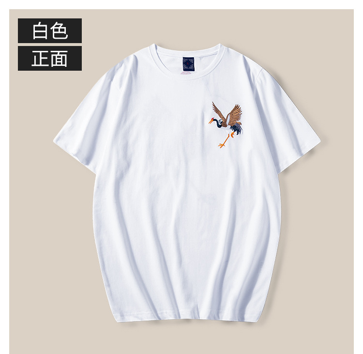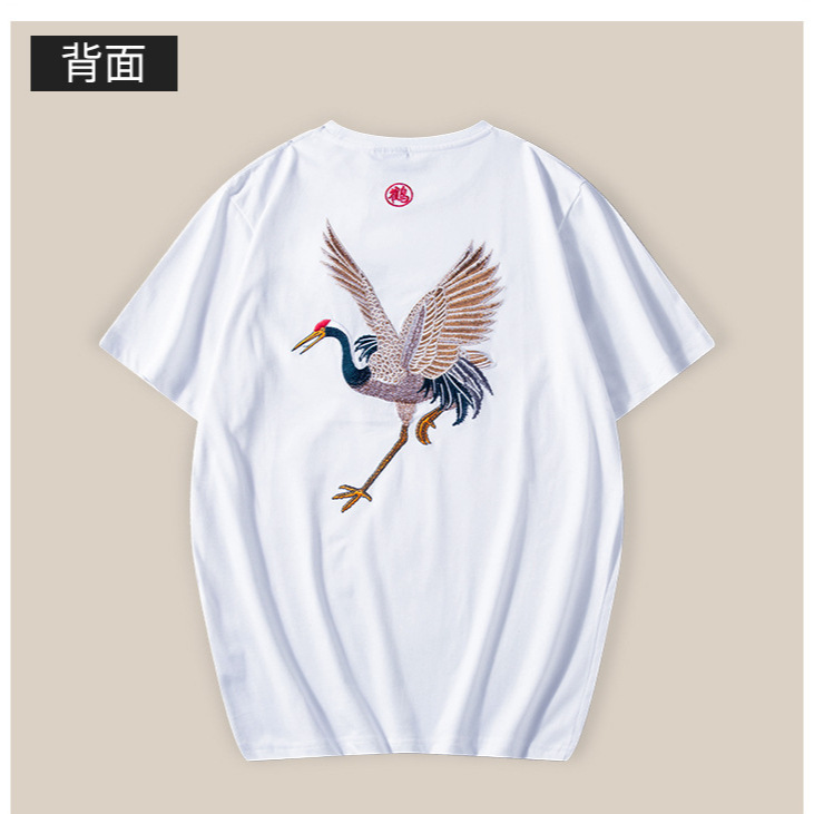 반팔 남성 티셔츠 여름 중국풍 자수 라운드넥 루즈핏 커플 반팔 티셔츠 원피스 도매 중국풍 패션