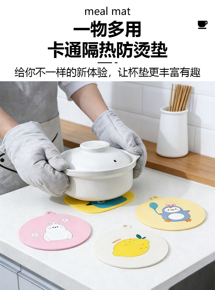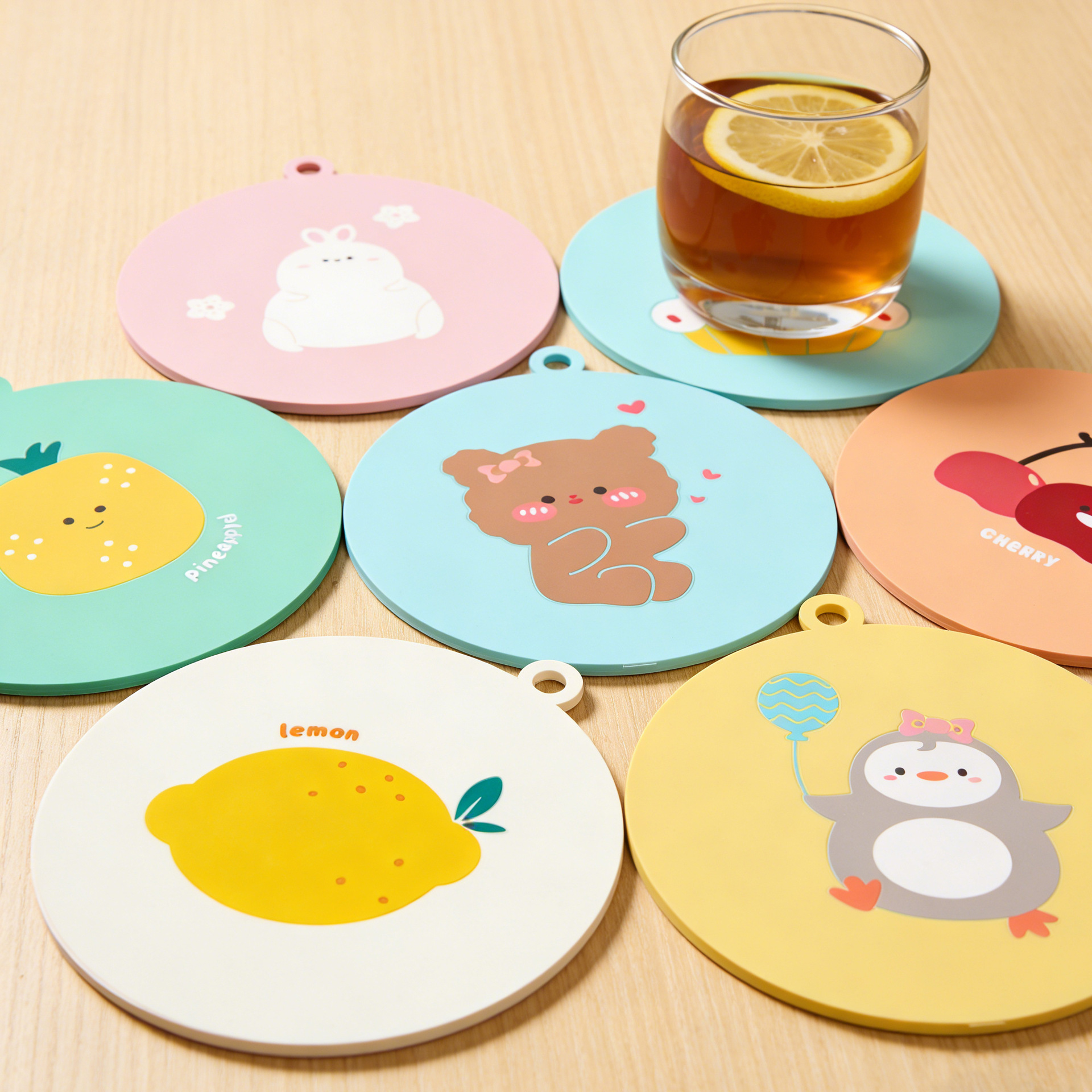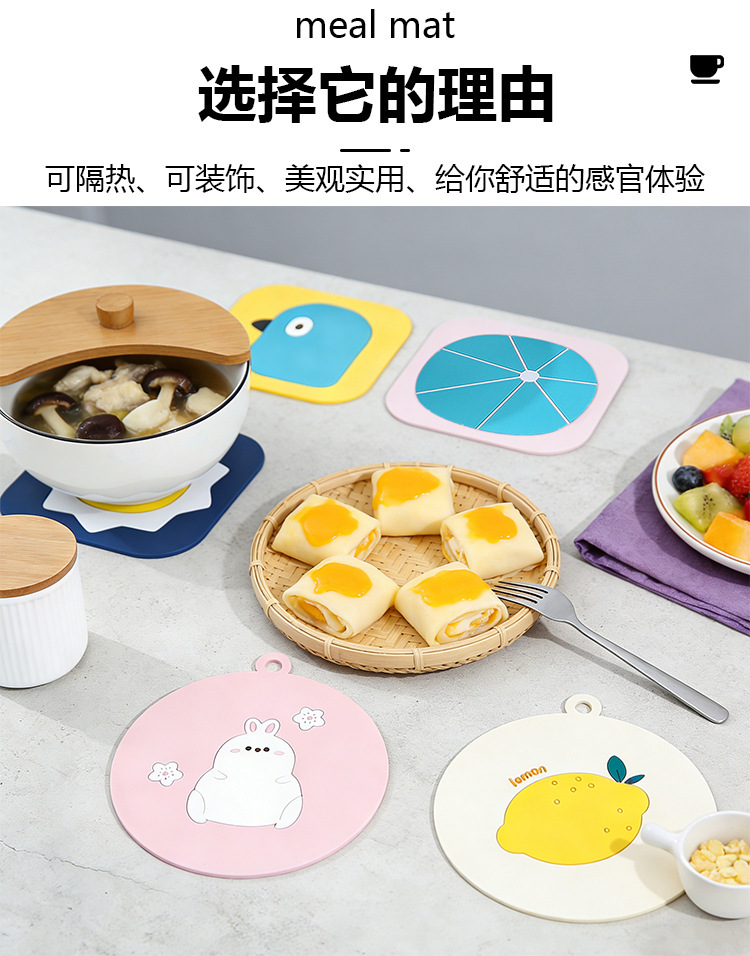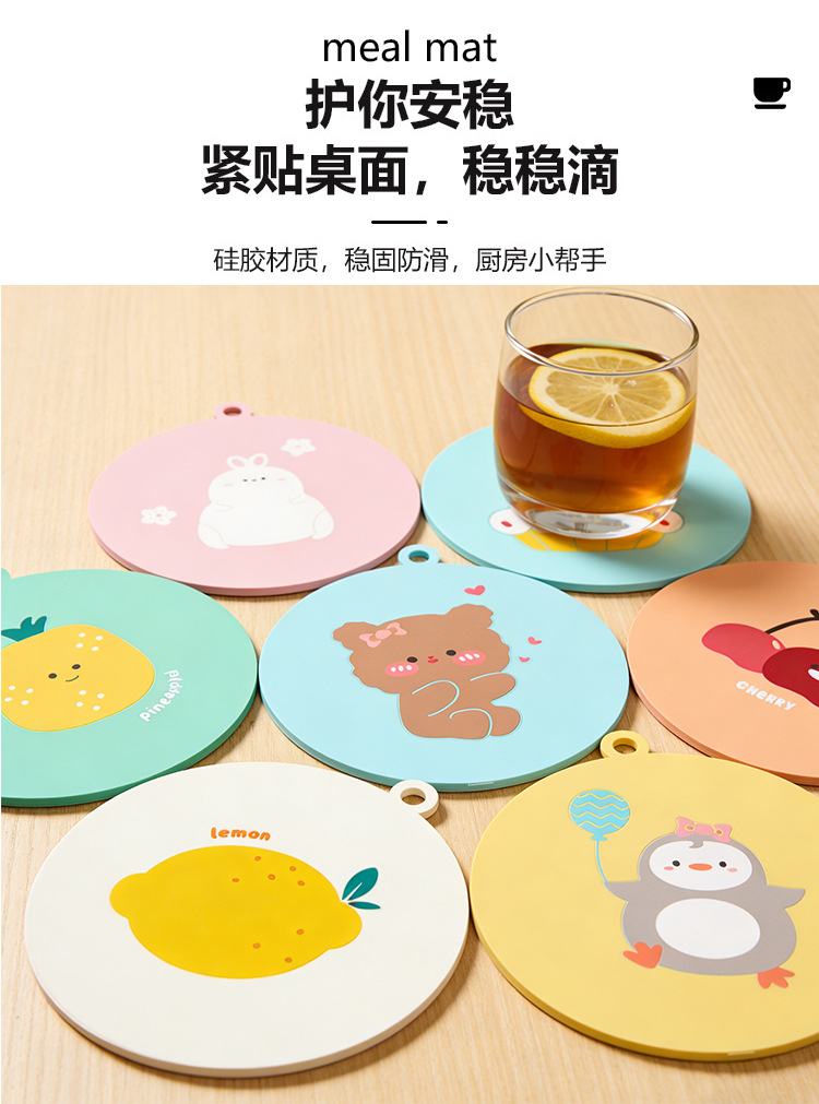 주방 단열 매트 귀여운 코스터 만화 그릇 매트 실리콘 화상 방지 플레이스매트 실리콘 차 매트 가정용 그릇 접시 매트