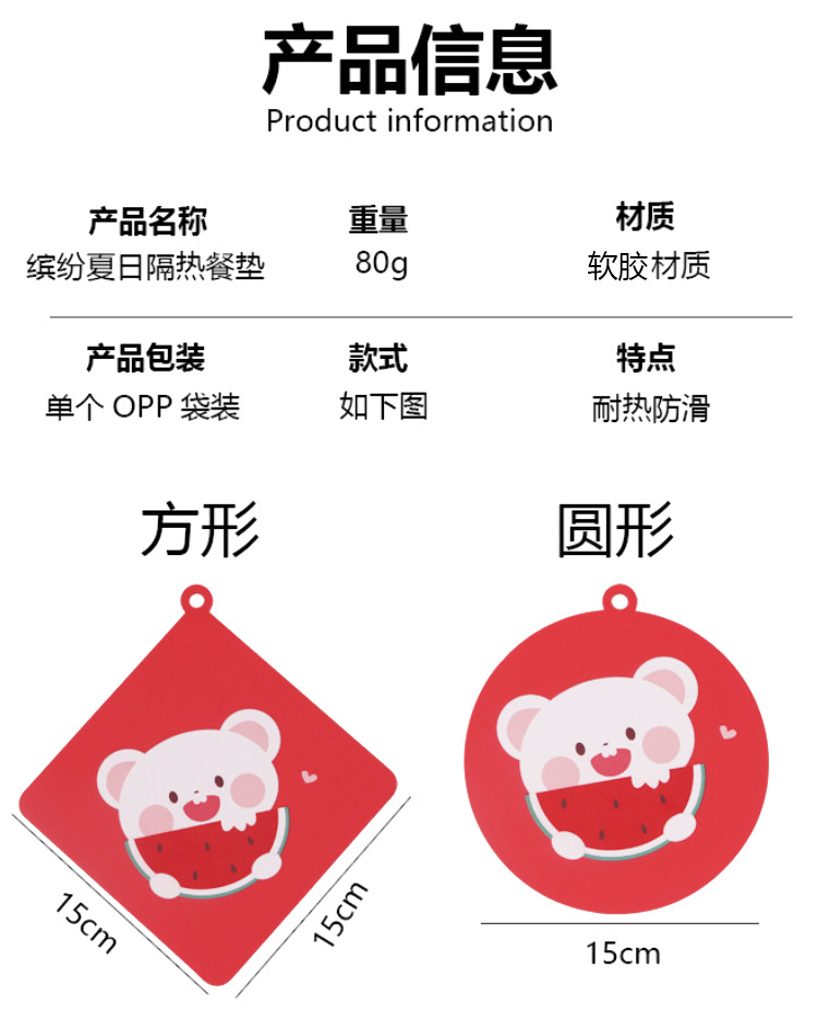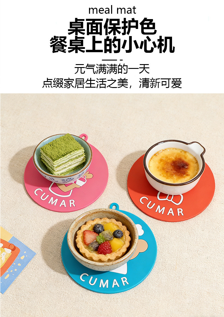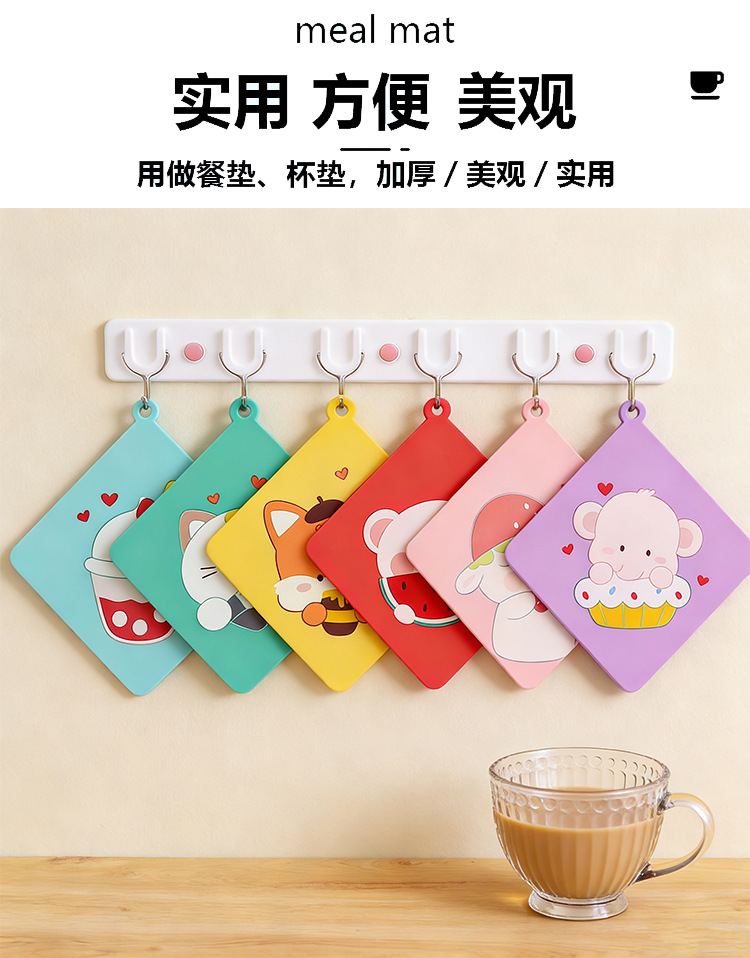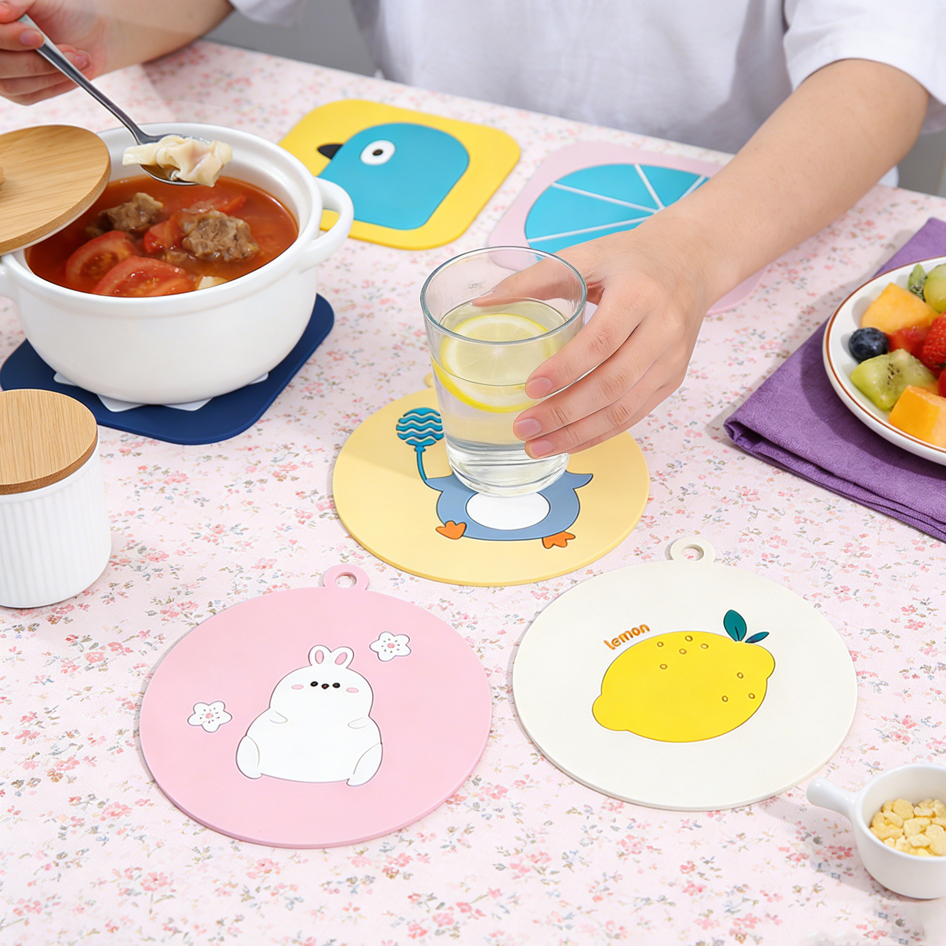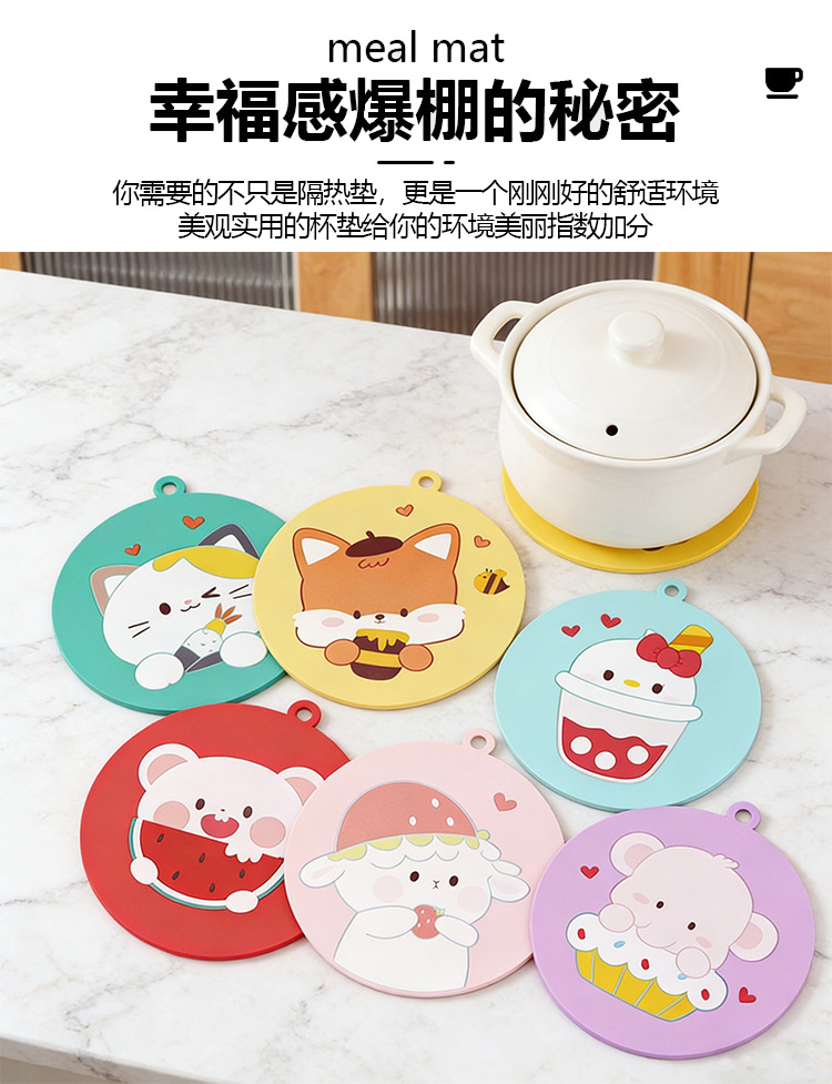 주방 단열 매트 귀여운 코스터 만화 그릇 매트 실리콘 화상 방지 플레이스매트 실리콘 차 매트 가정용 그릇 접시 매트
