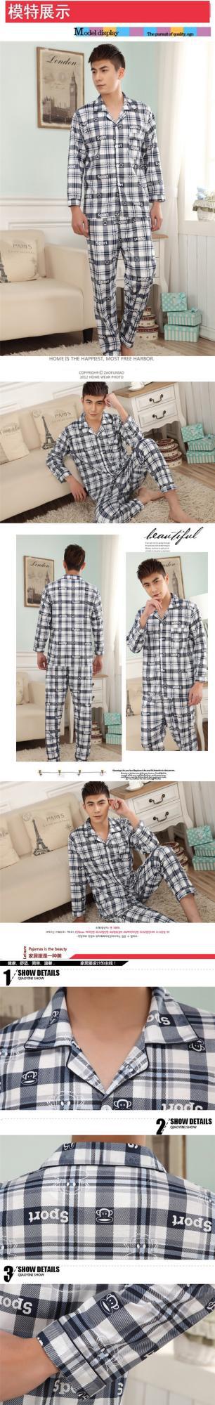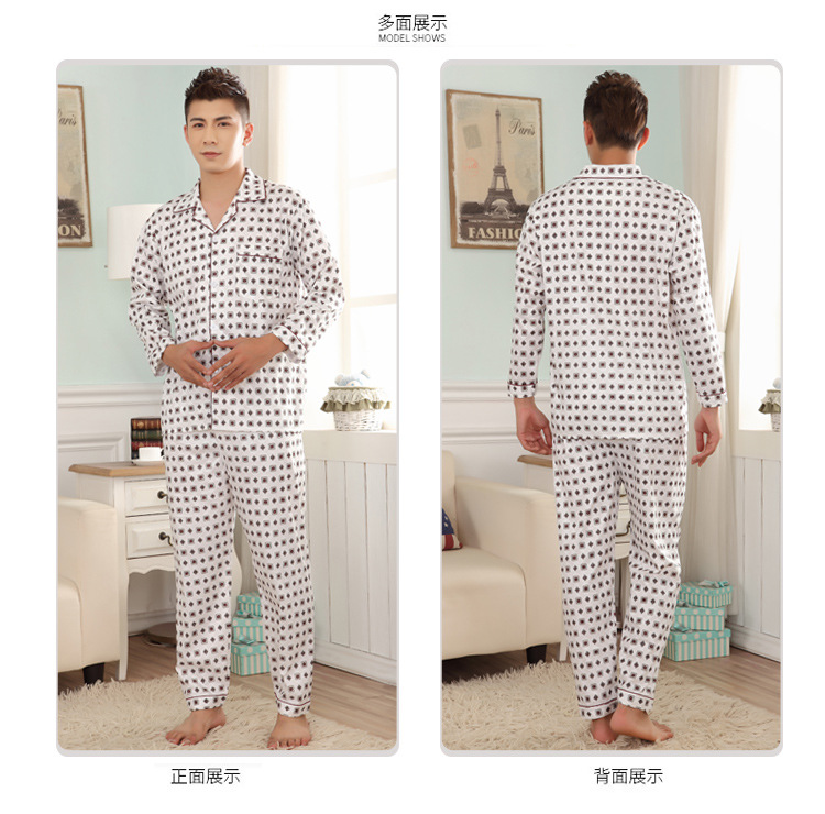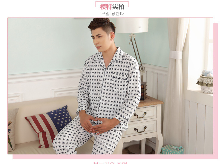 잠옷 남자의 긴팔 봄과 가을 남자의 니트 면 카디건 느슨한 잠옷 세트 잠옷 가정 옷 중년 및 노인