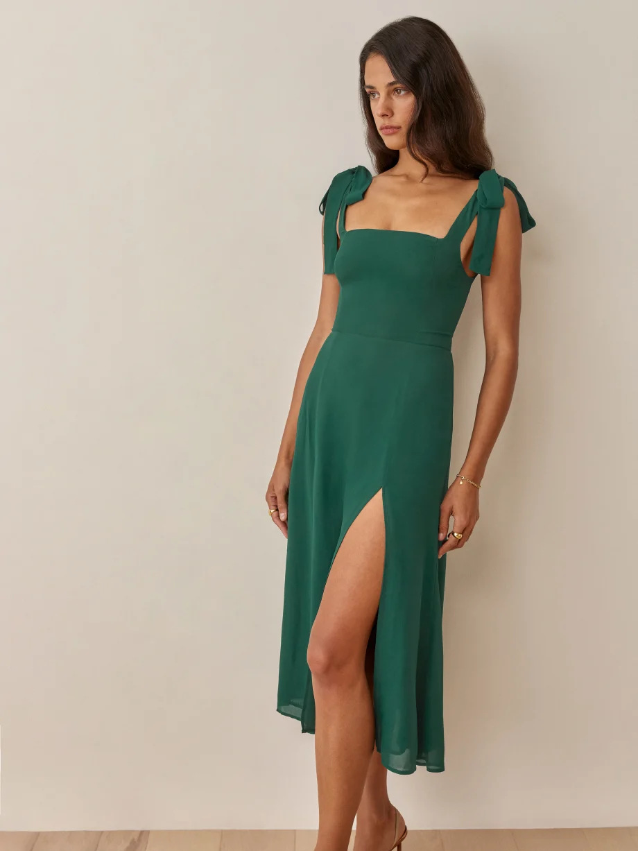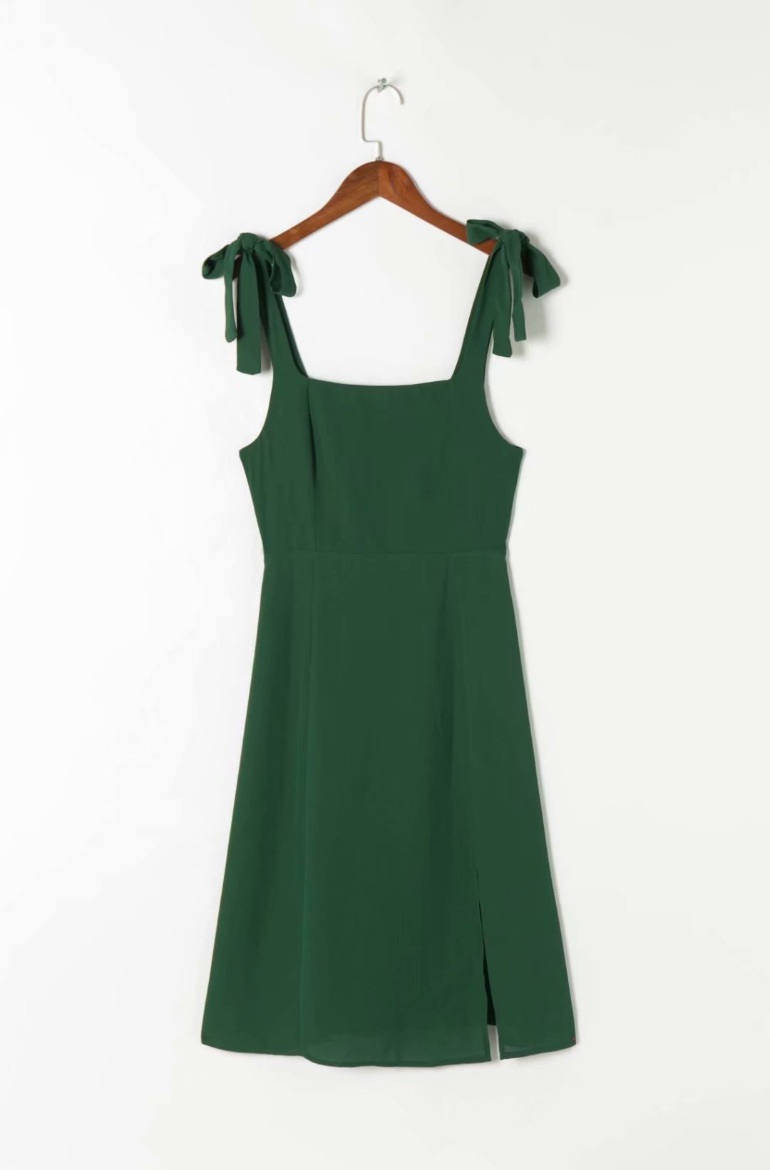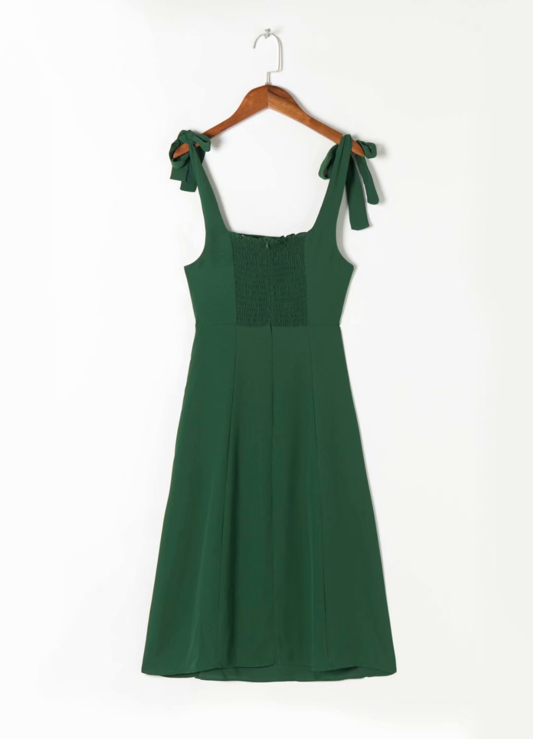 여름 유럽과 미국 휴가 스타일 단색 해변 원피스 슬리밍 하이 웨이스트 미디 원피스 우아한 통근 녹색 스트랩 원피스