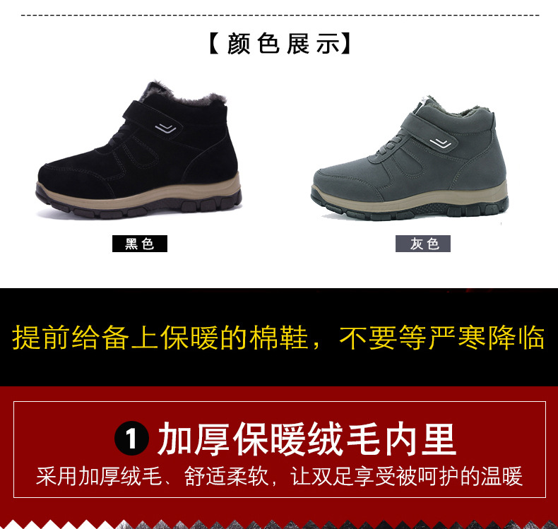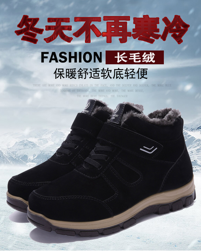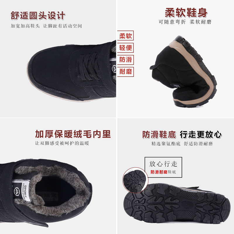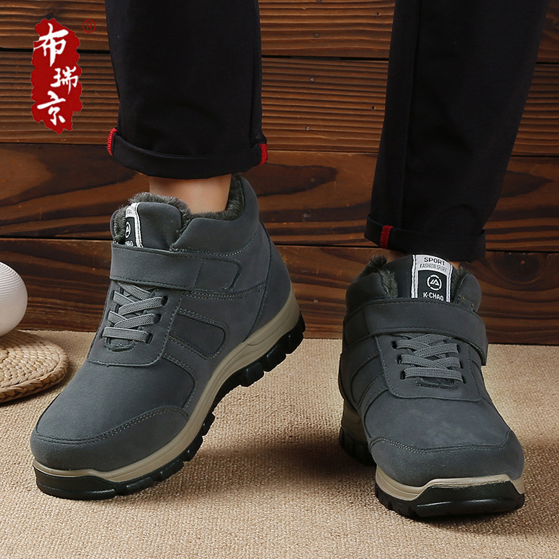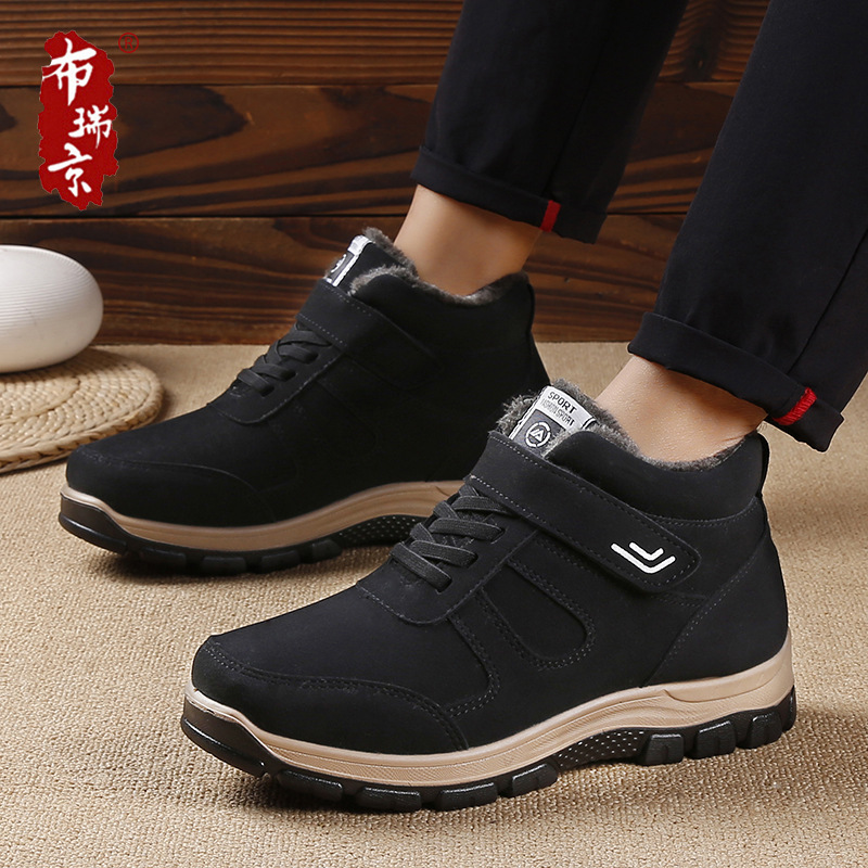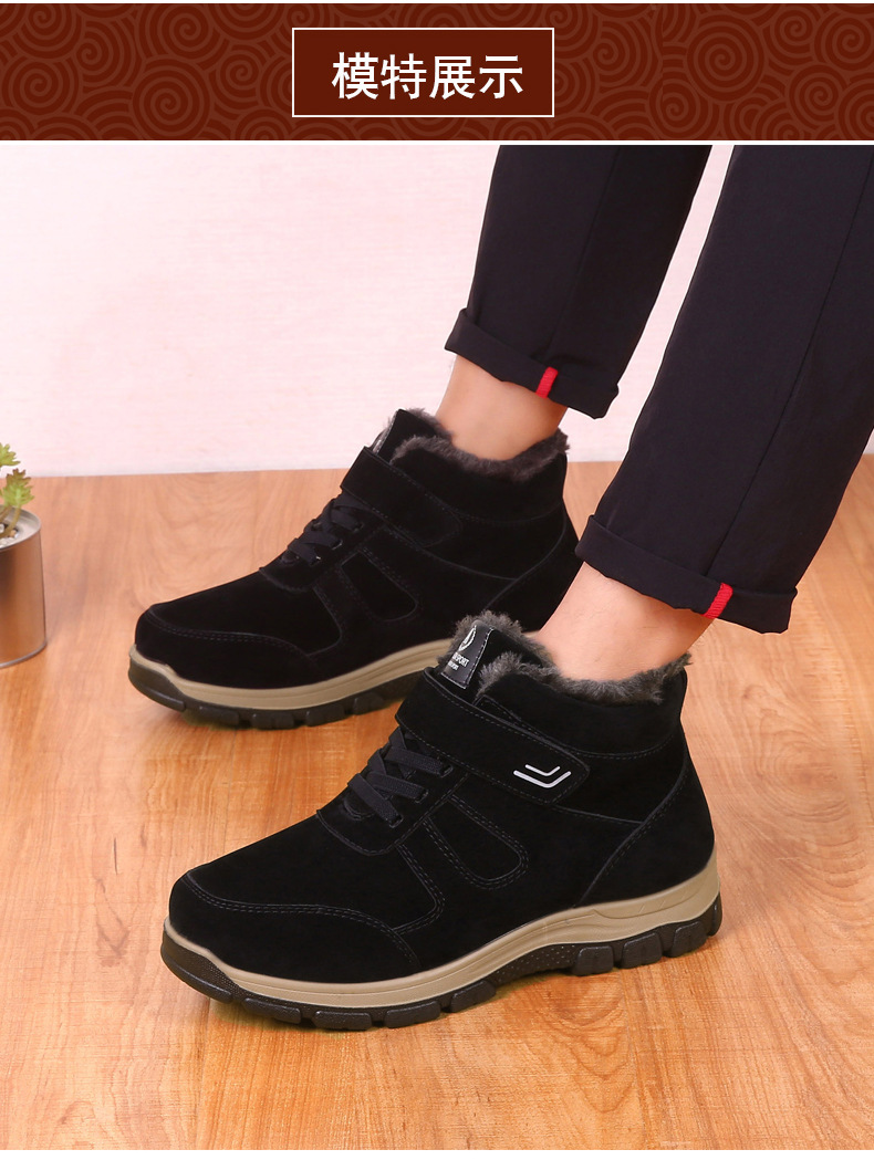 겨울 오래 된 베이징 천 신발 남자의 기모 두꺼운 면 부츠 편안한 면 신발 중년 및 노인 아빠 신발 스노우 부츠 하이탑 면 신발