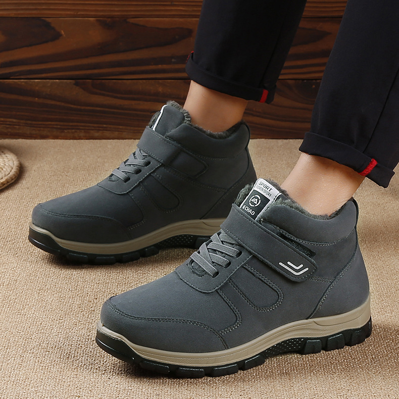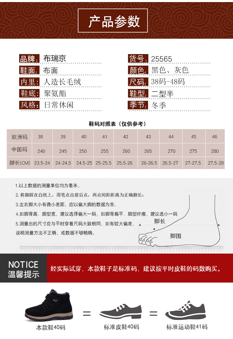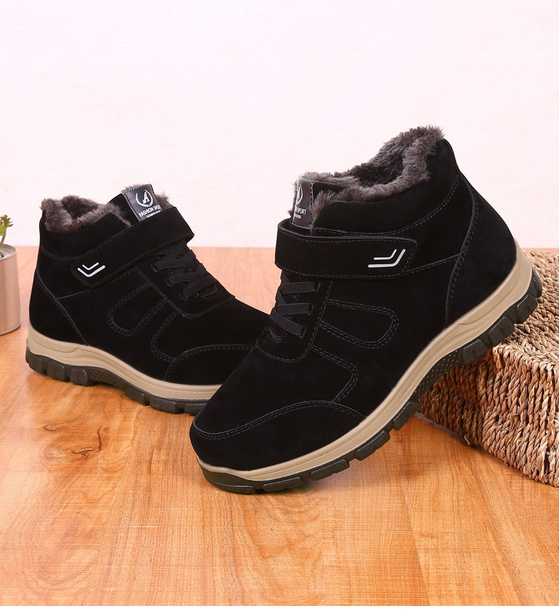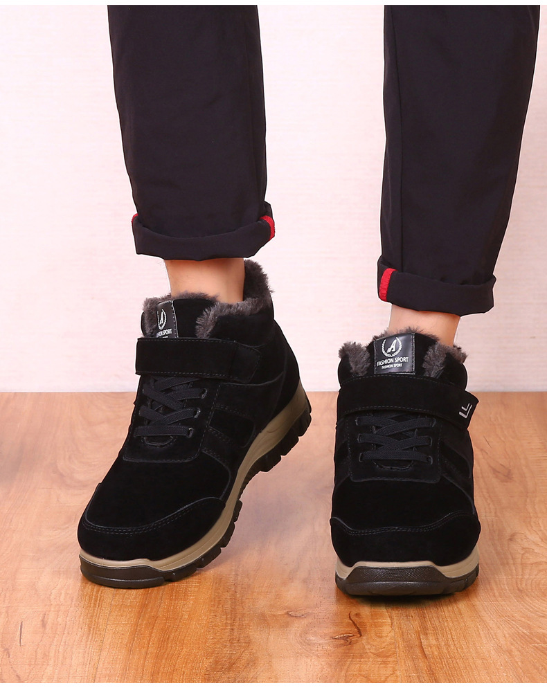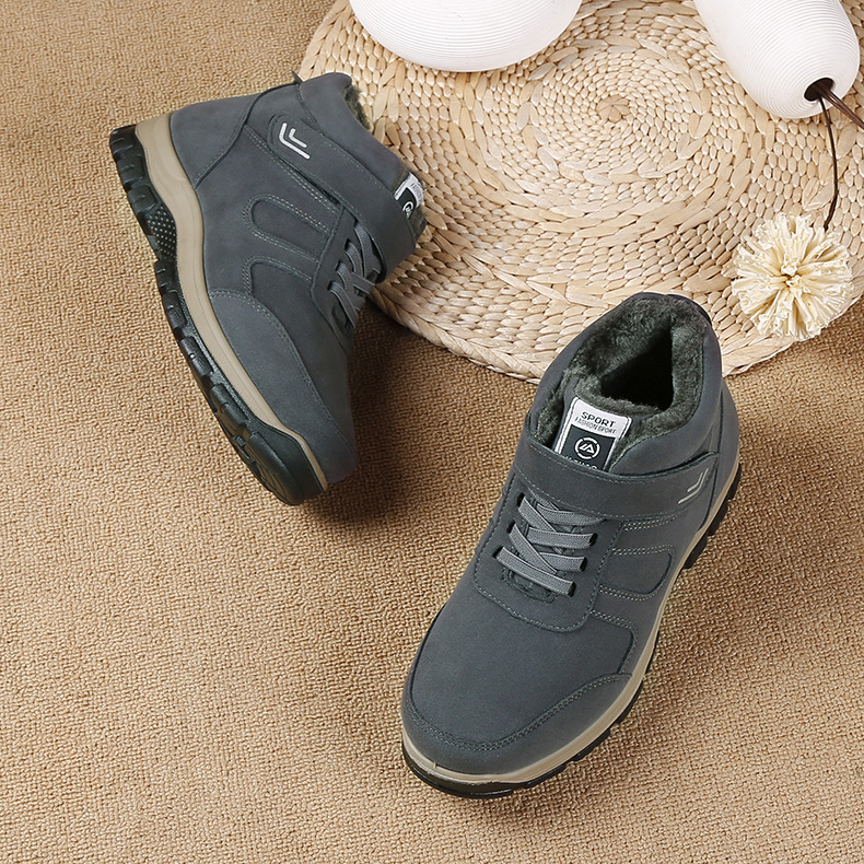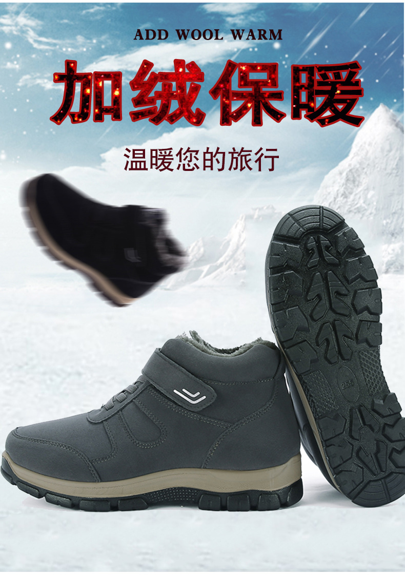 겨울 오래 된 베이징 천 신발 남자의 기모 두꺼운 면 부츠 편안한 면 신발 중년 및 노인 아빠 신발 스노우 부츠 하이탑 면 신발