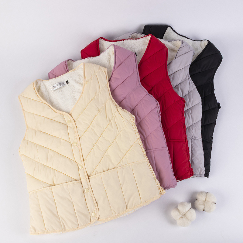 다운 코튼 조끼 여성 짧은 스타일 2025 가을, 겨울 새로운 스타일 플러스 벨벳 라이너 슬림 피트 내부 양복 조끼 따뜻한 조끼 도매