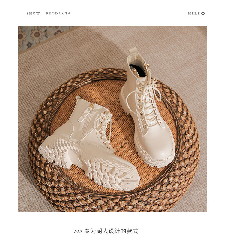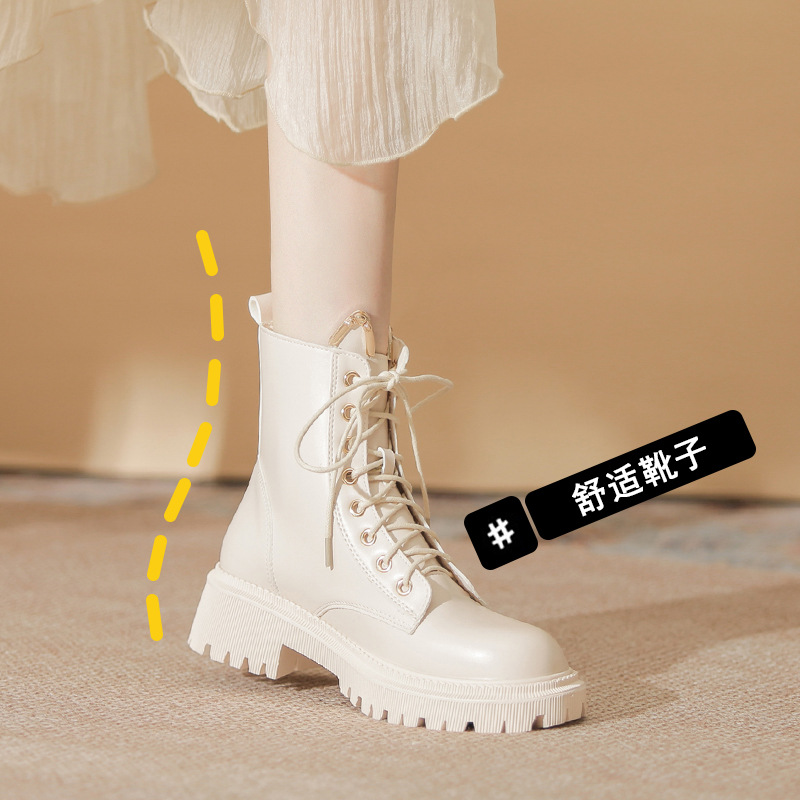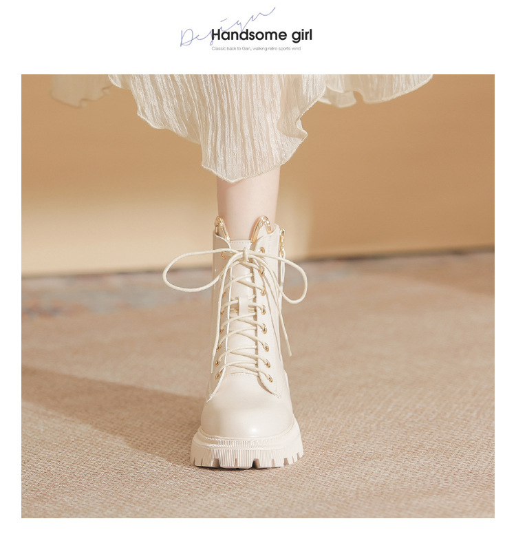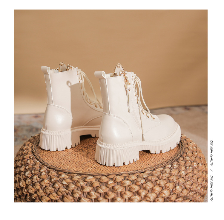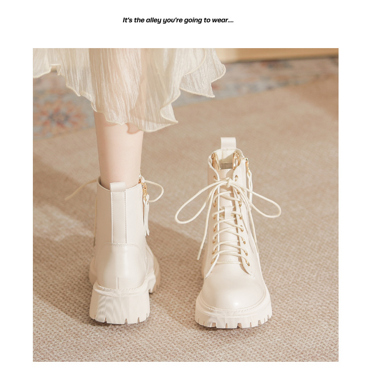 고메니 가을 겨울 신상품 마틴 부츠 여성용 고양이 귀 디자인 두꺼운 밑창 여성 부츠 화이트 숏부츠 6203-3