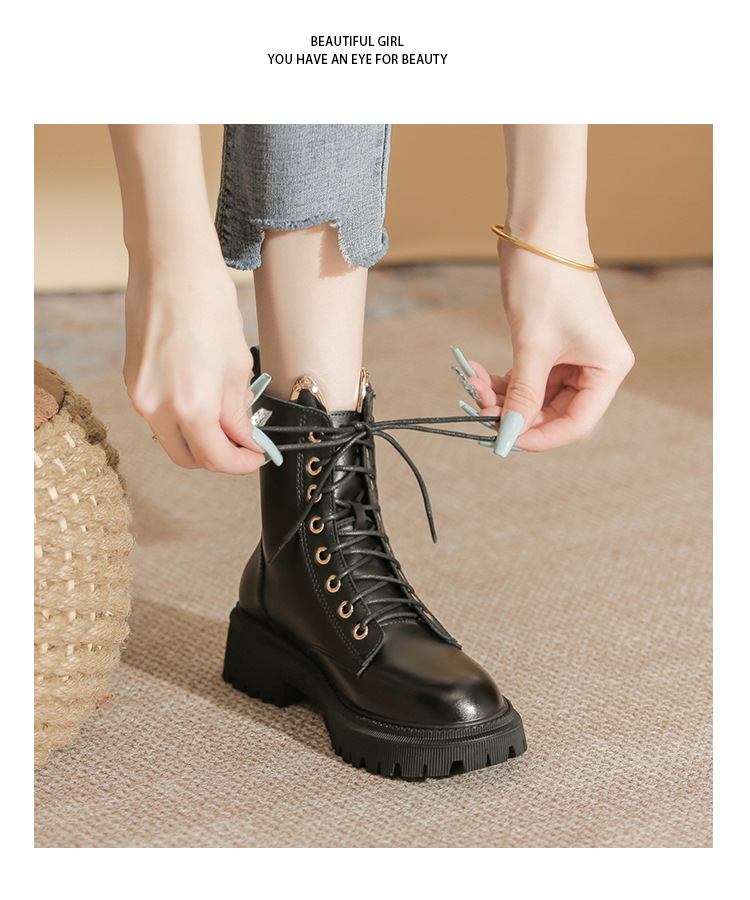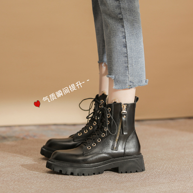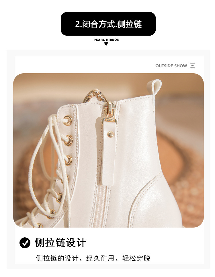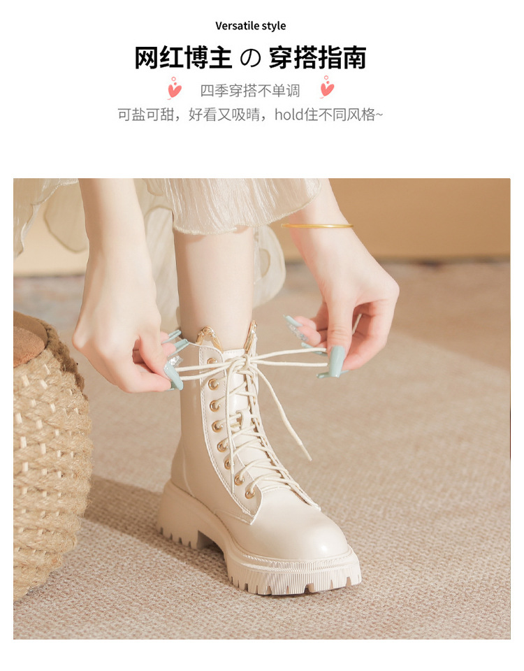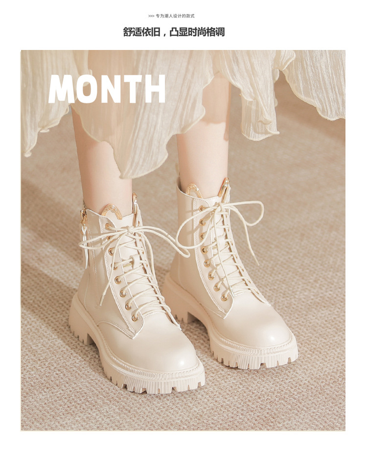 고메니 가을 겨울 신상품 마틴 부츠 여성용 고양이 귀 디자인 두꺼운 밑창 여성 부츠 화이트 숏부츠 6203-3