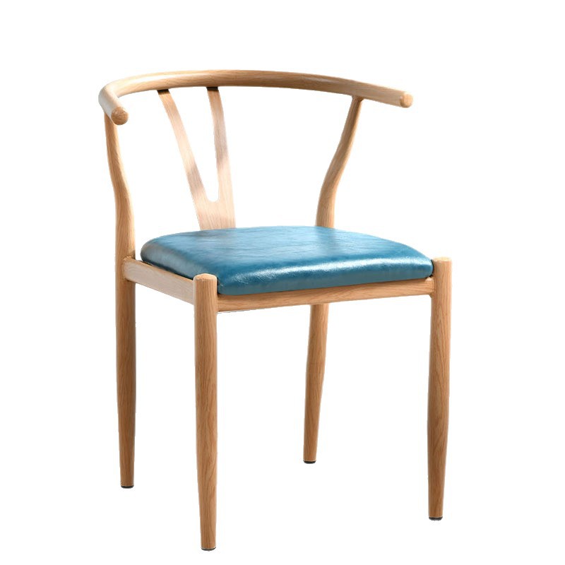 파란색 움푹 패인 밝은 나뭇결 철제 태시 의자 강화 버전