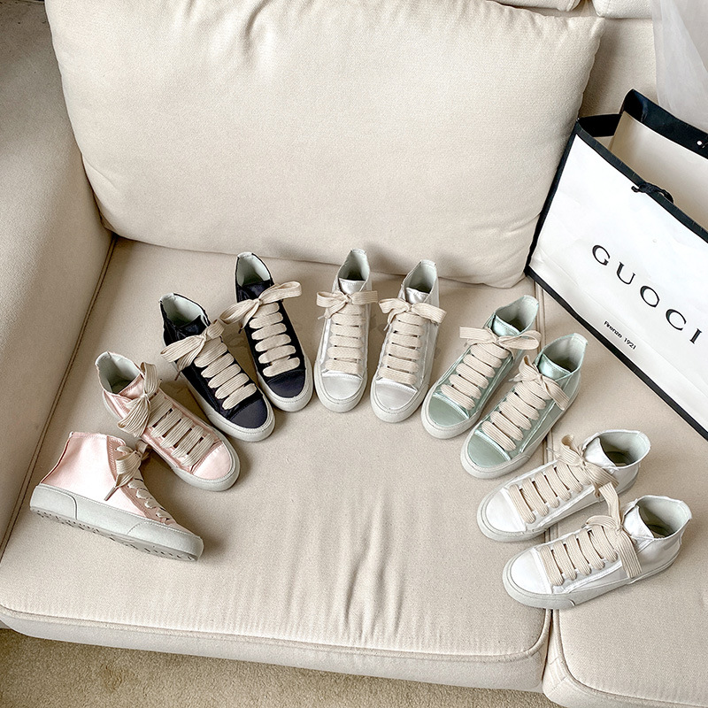 플랫 캐주얼 슈즈, 스페인 하이탑 새틴 슈즈, 여성용 2026년 신상 레이스업 인터넷 인기 캔버스 스니커즈, 플랫 힐 슈즈