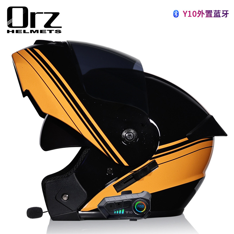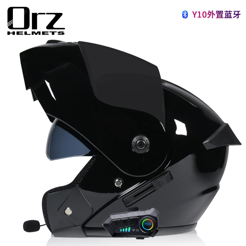 Orz 전기 자동차 헬멧 노출 헬멧 더블 렌즈 남성 및 여성용 오토바이 라이딩 레이스 풀 헬멧 사계절 블루투스