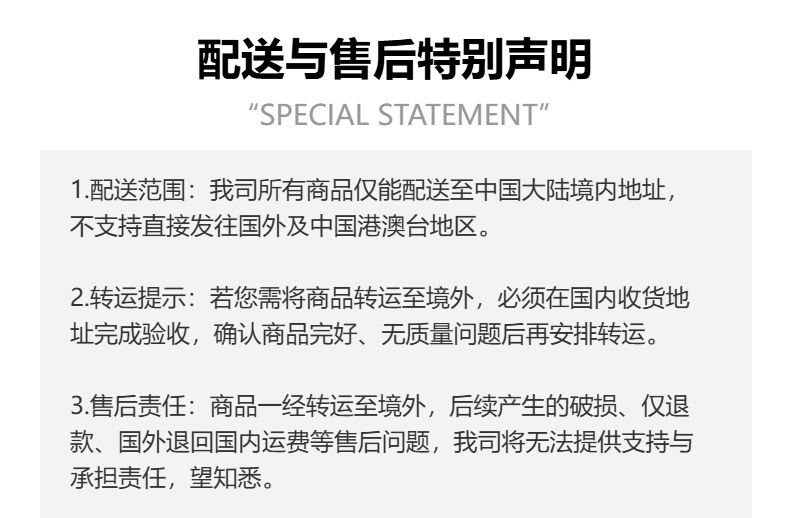 운송 비용 안내 플러스올마이너스는 배송대행시스템을 사용 중입니다. 최초 상품 구매 시 결제하는 배송비는 ‘중국내배송비(판매자->배송대행지)’이며 배송대행지에 상품이 도착했을 때 무게를 측정해 해외배송, 국내배송 및 통관비가 확정되면 고객분들께 추가로 해당 비용 결제를 요청드립니다. 무게에 따른 배송비용은 페이지를 참조해 주세요.