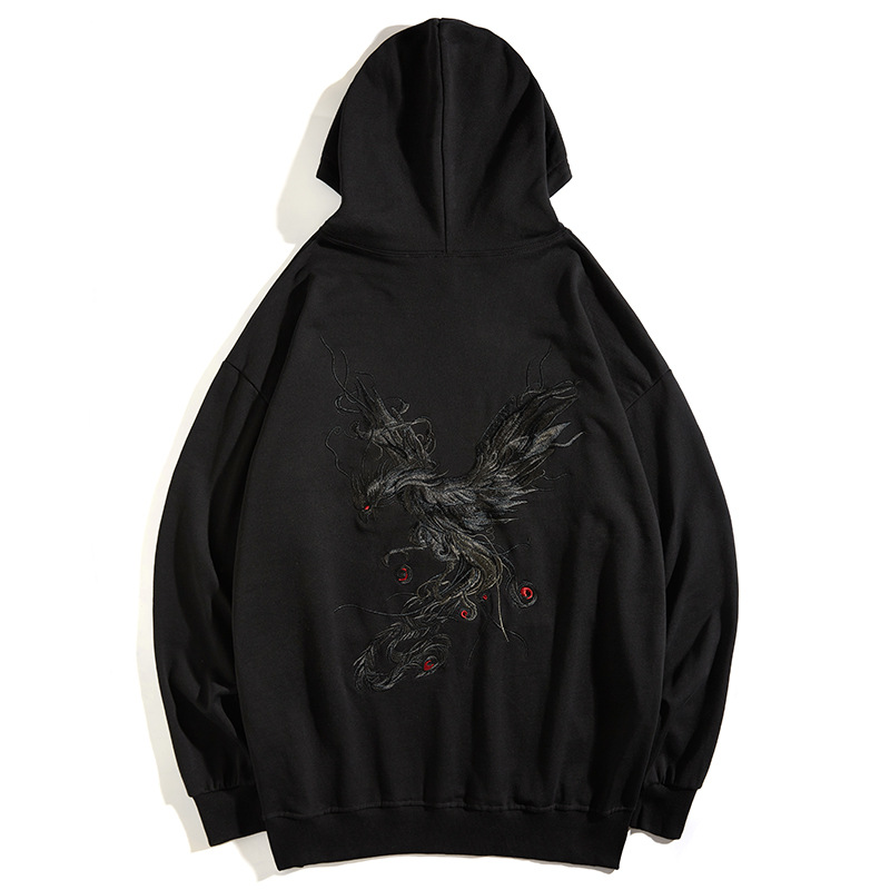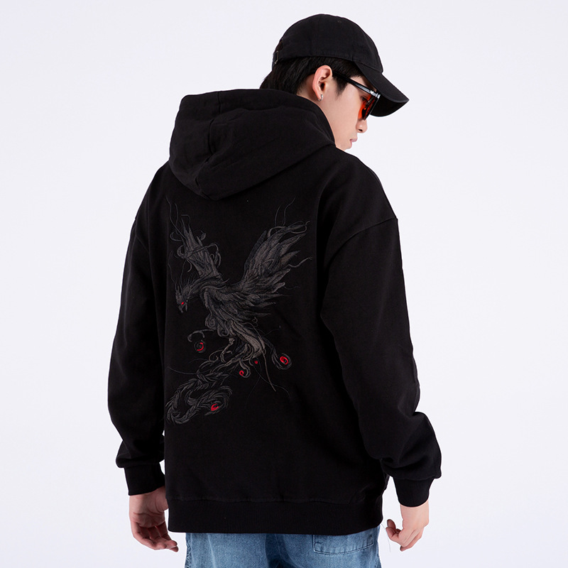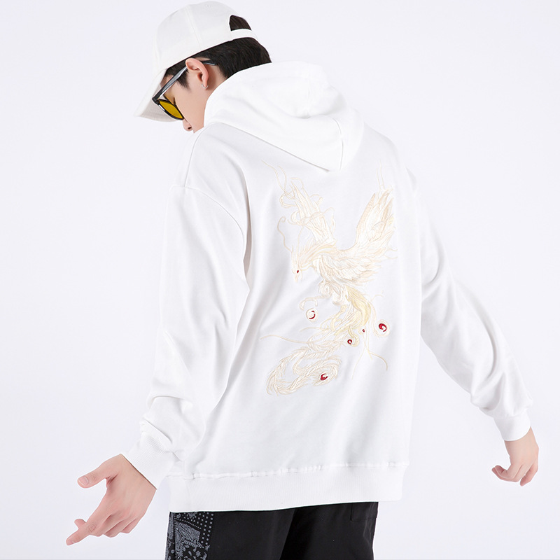 가을 겨울 남성용 빅사이즈 상의 자켓, 중국풍 자수 호랑이 자수 후드티, 남성용 루즈핏 풀오버, 빅사이즈 루즈핏