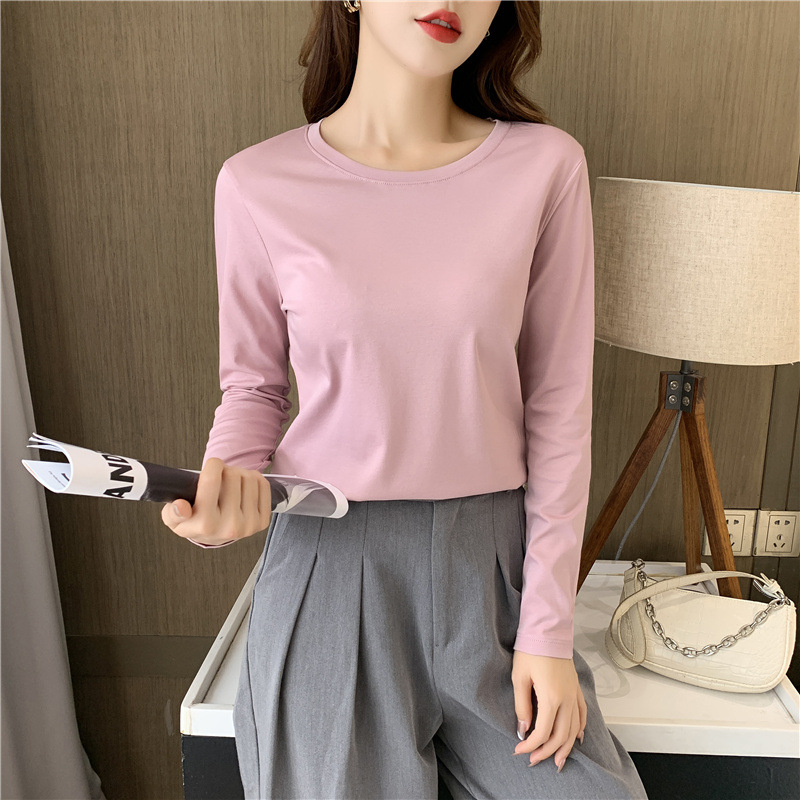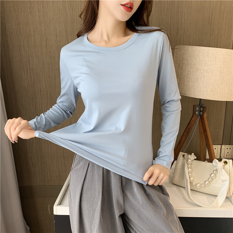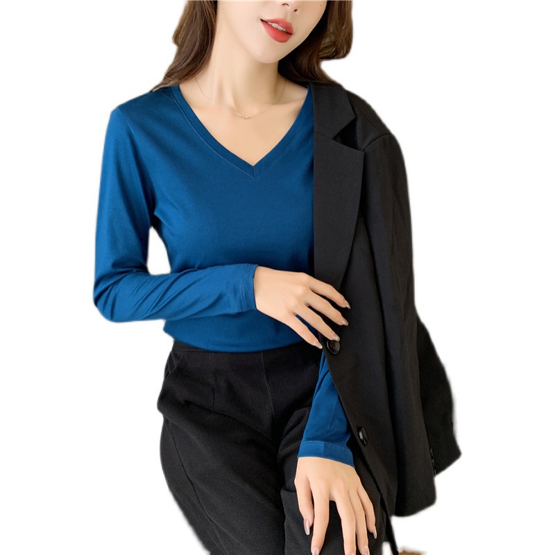 80 양면 머서라이즈 코튼 화이트 긴팔 여성용 티셔츠 V넥 가을 슬림핏 슬리밍 만능 베이스 셔츠 이너 탑