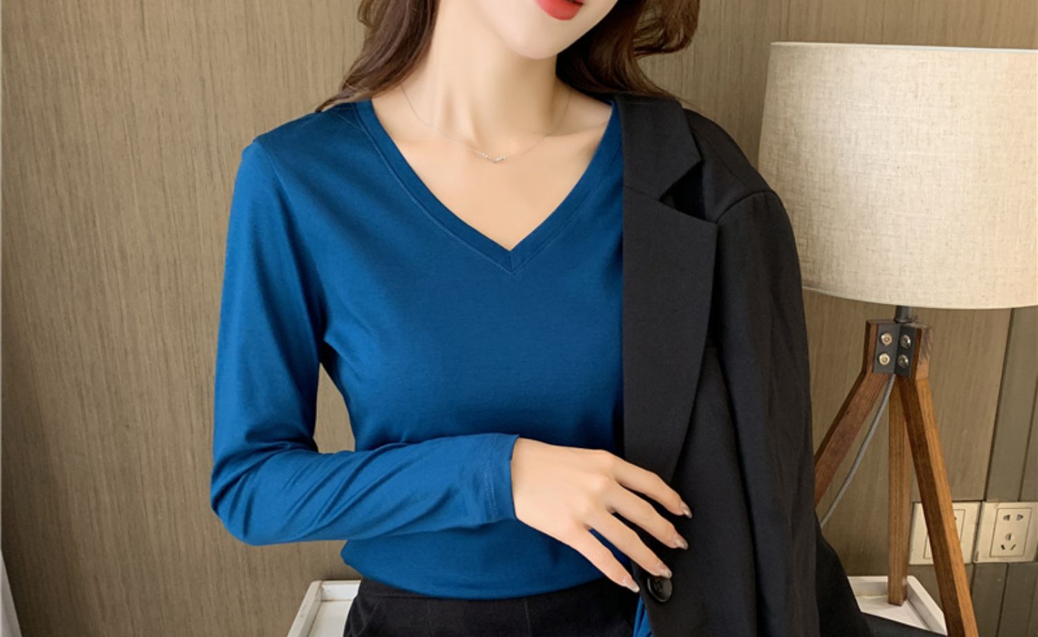 피콕 블루 V넥