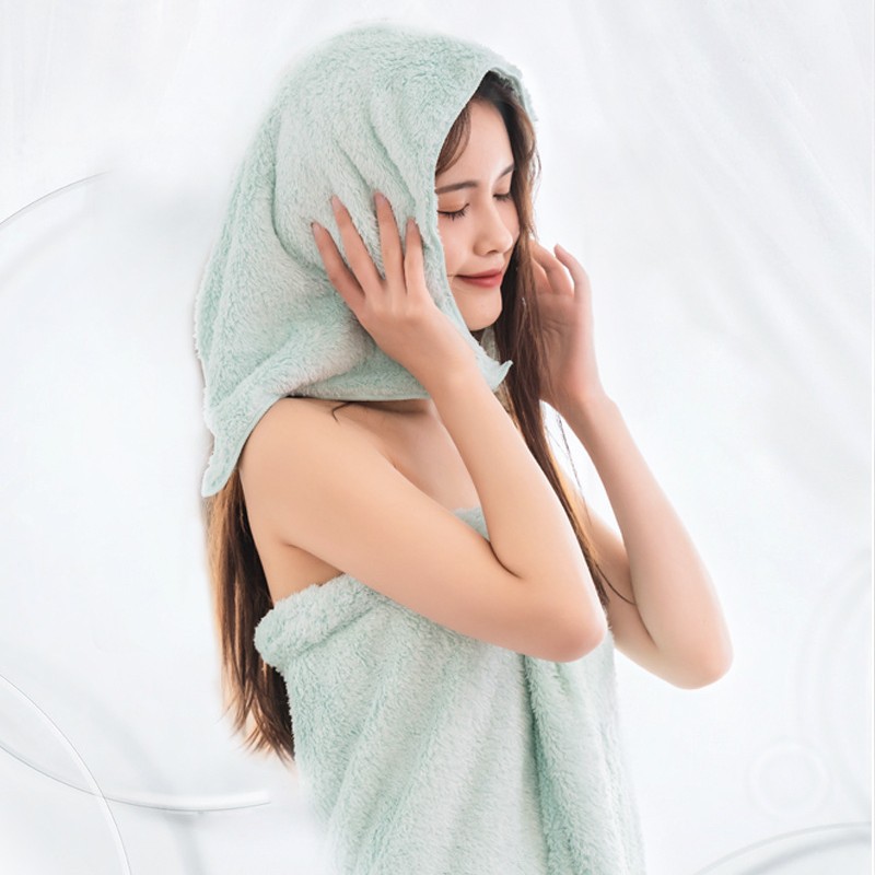 YODOXIUI日本珊瑚绒吸水毛巾超细纤维菠萝格吸水面巾快干发毛巾帽
