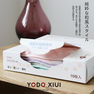 日本超细纤维方巾20*20儿童擦手巾礼品盒装儿童毛巾小方巾10条装