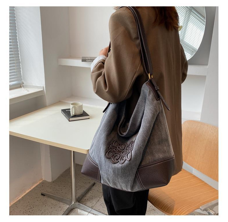 Queen 캐주얼 숄더 토트 백 대용량 중고 가방 여성용 가방 2024 크로스 바디 가죽 캔버스 가방 게으른 스타일