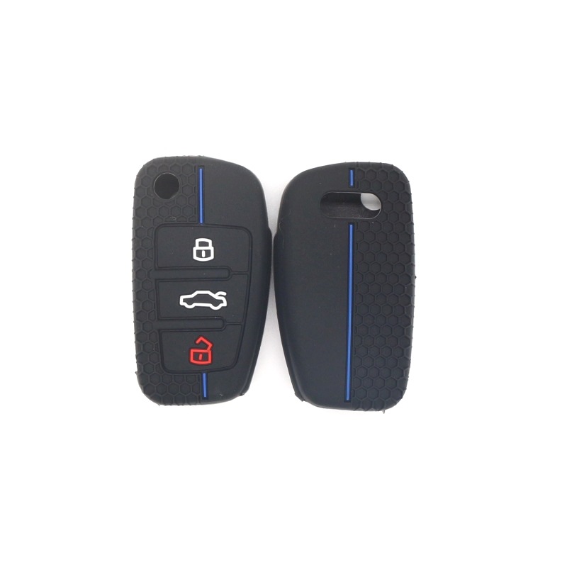 适用于 奥迪A1Q5Q7 折叠3键汽车钥匙套QA6矽胶遥控器保护套 无标