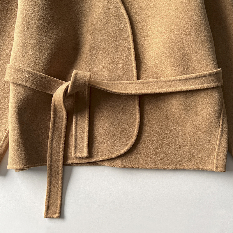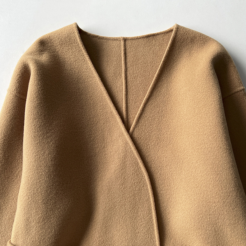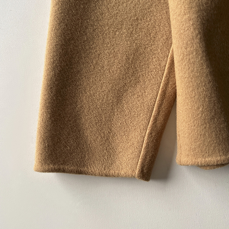 노르딕 틈새 곡선 컨투어 레이스업 울 캐시미어 양면 블루종 코트