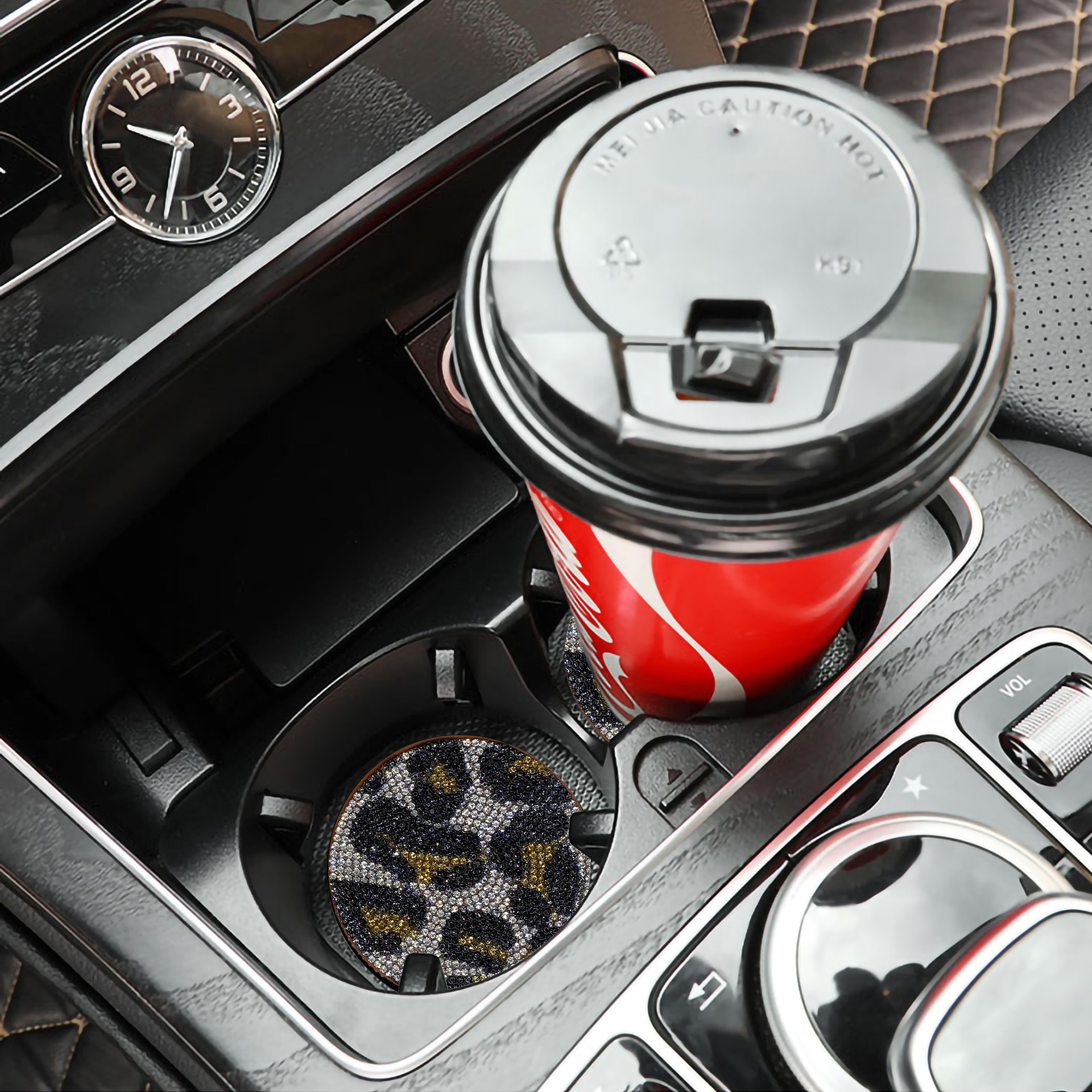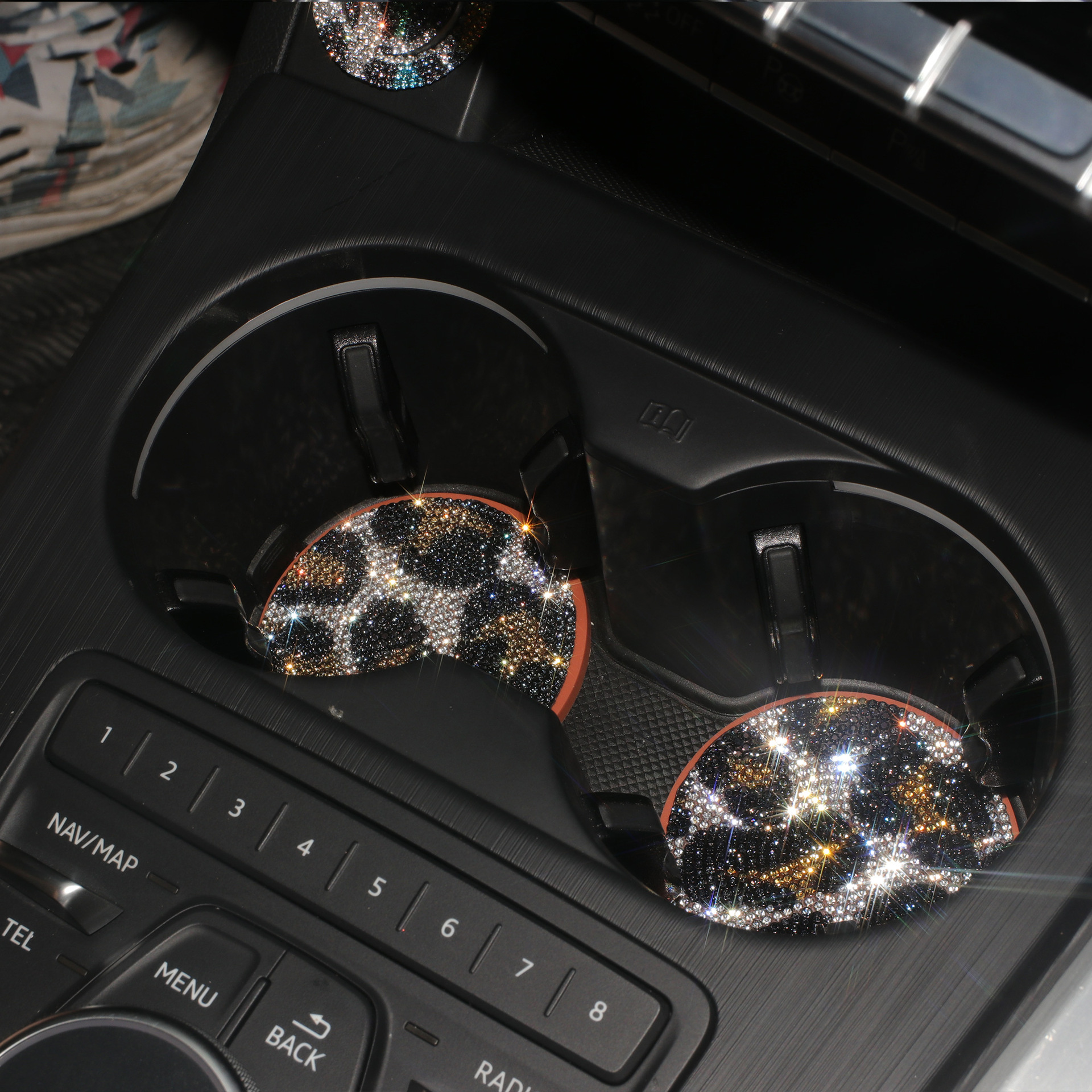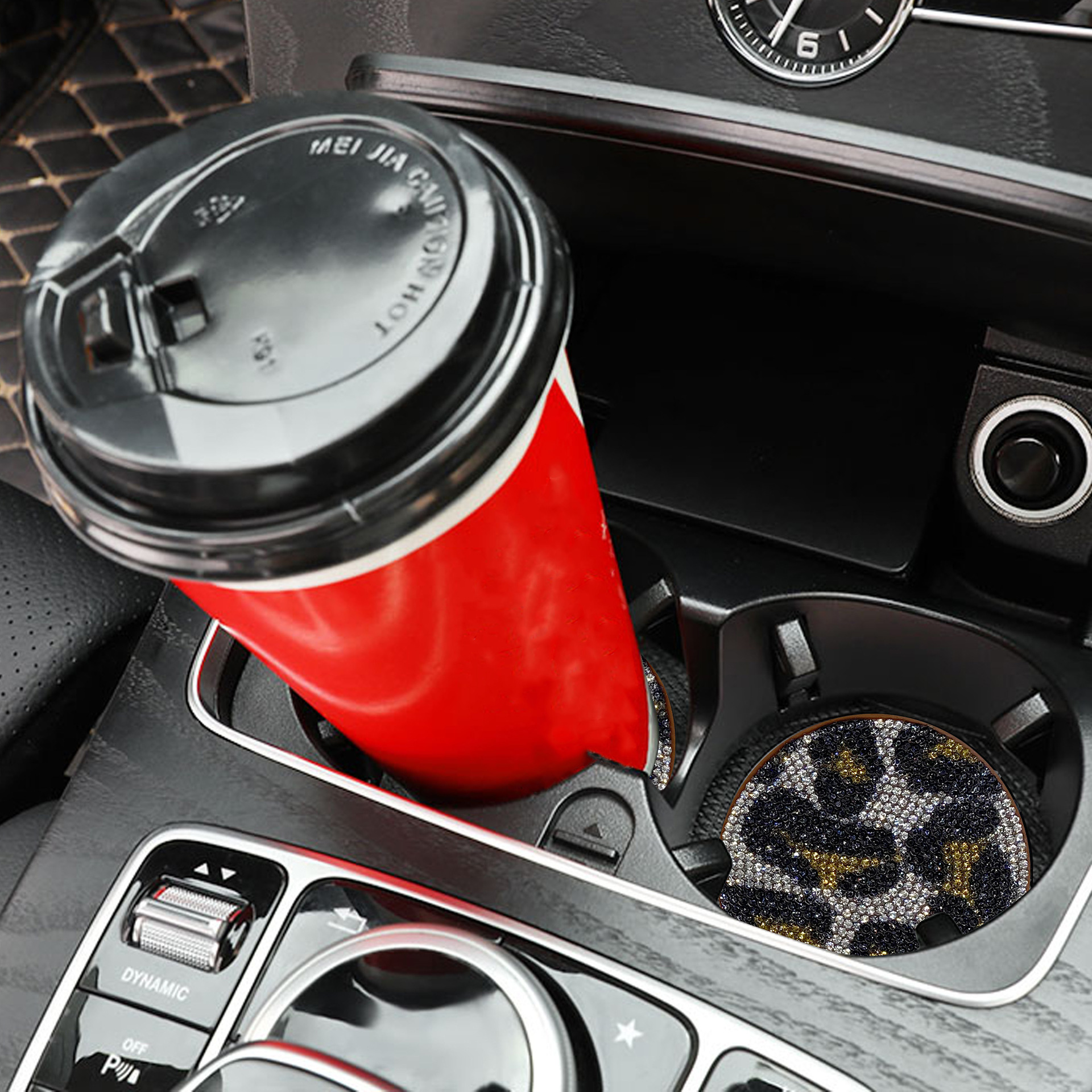 크로스-보더 자동차 컵 매트 실리콘 모조 다이아몬드 미끄럼 방지 매트 코스터 레오파드 무늬 개인 패션 자동차 인테리어 용품