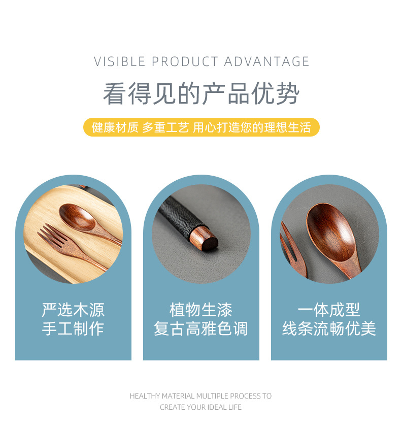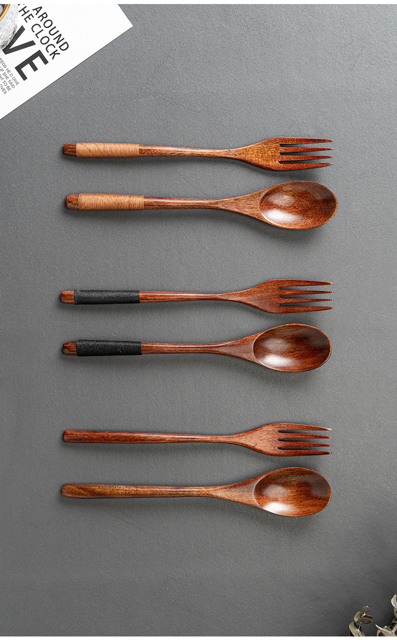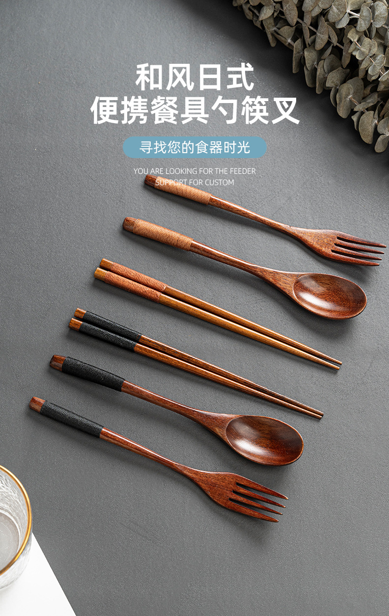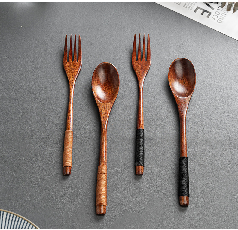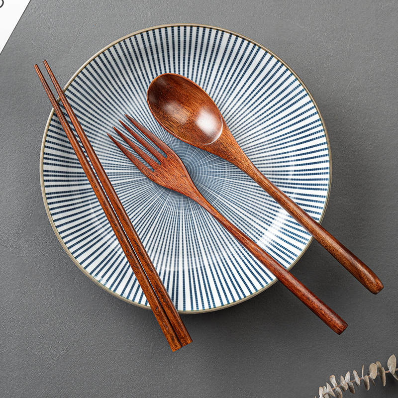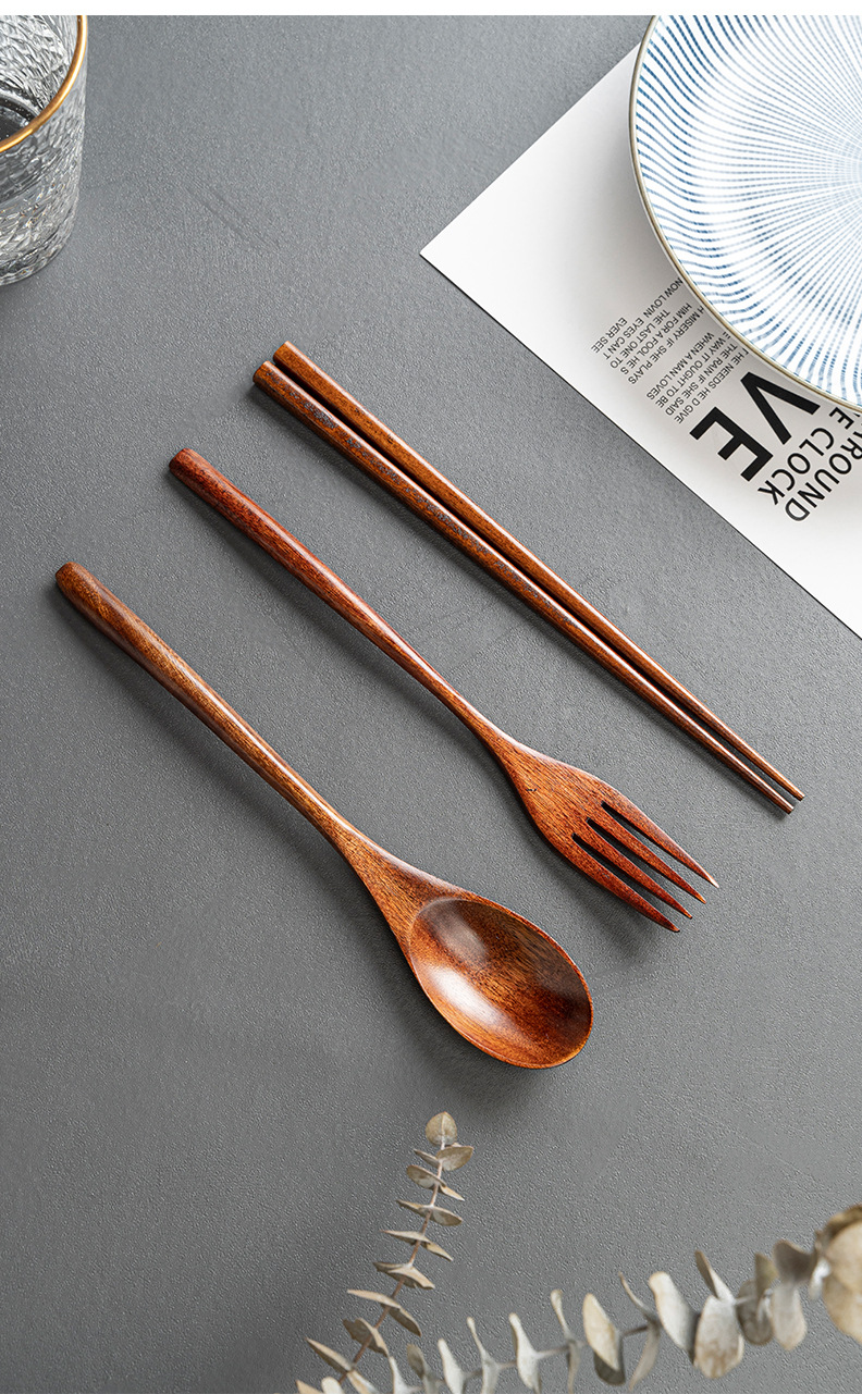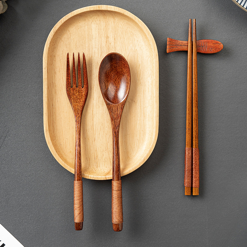 레이저 레터링 나무 숟가락과 포크 젓가락 세트 도매 난무 오래 된 페인트 스푼 젓가락 포크 3 피스 공장 도매