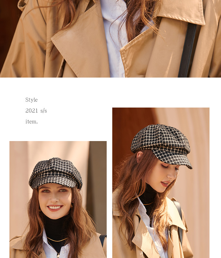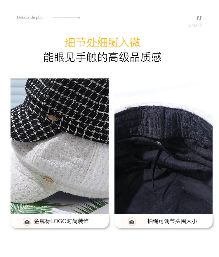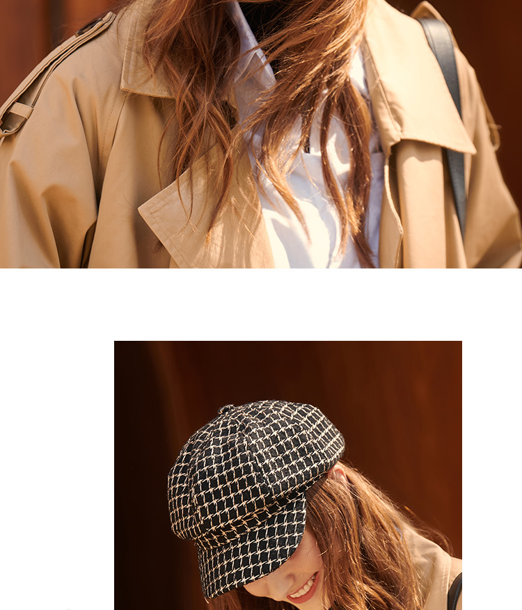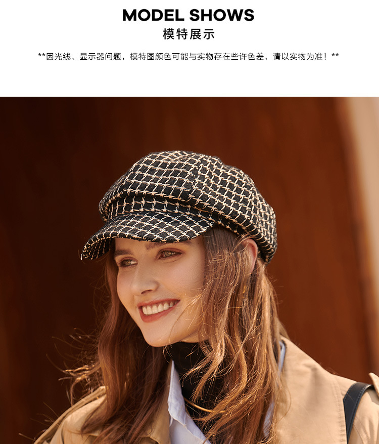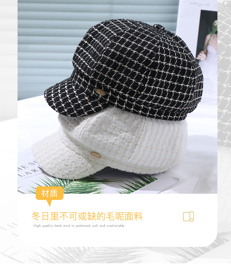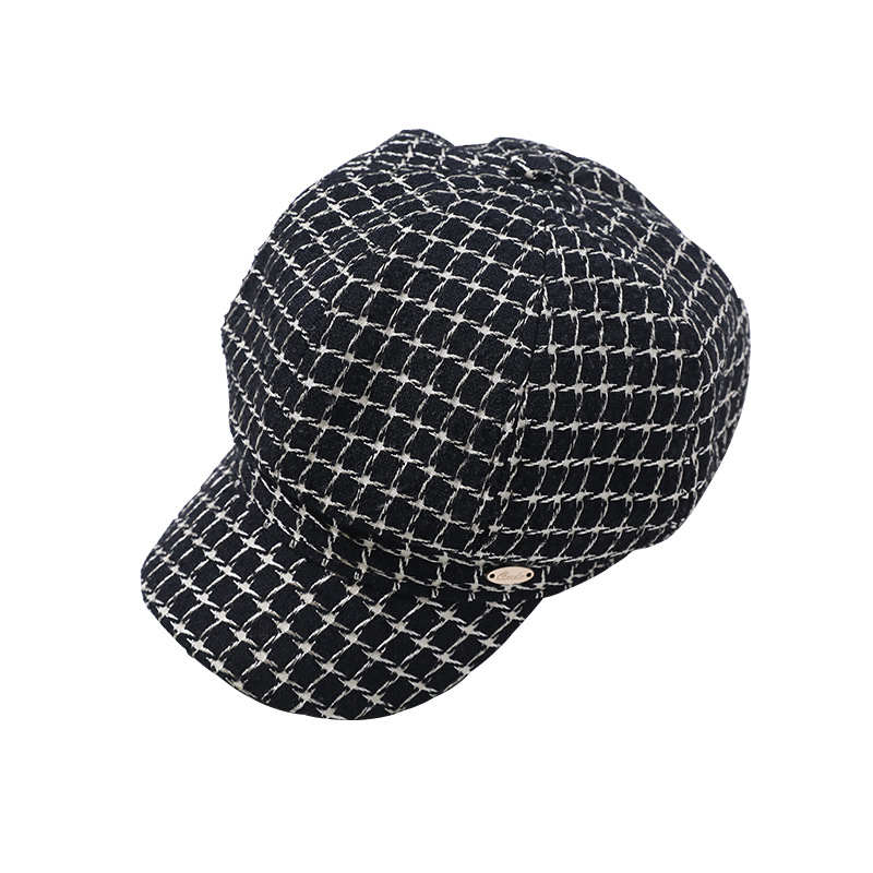 모자 여성의 가을과 겨울 새로운 패션 패션 모자 우아한 영국 복고풍 격자 무늬 클래식 샤넬 스타일 팔각형 모자