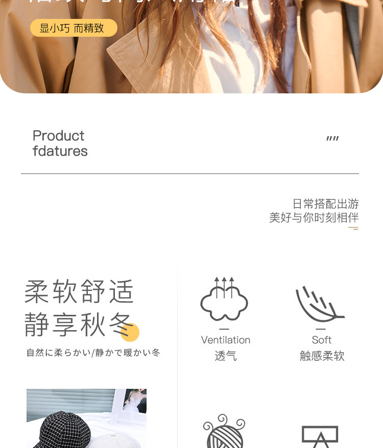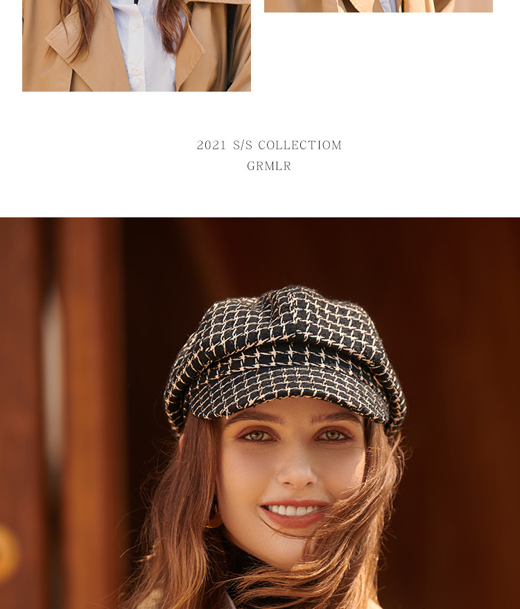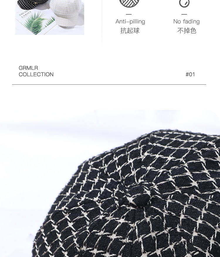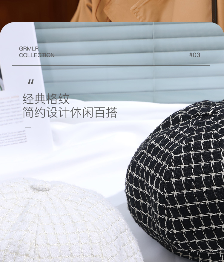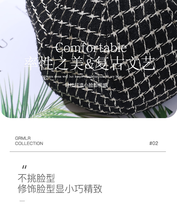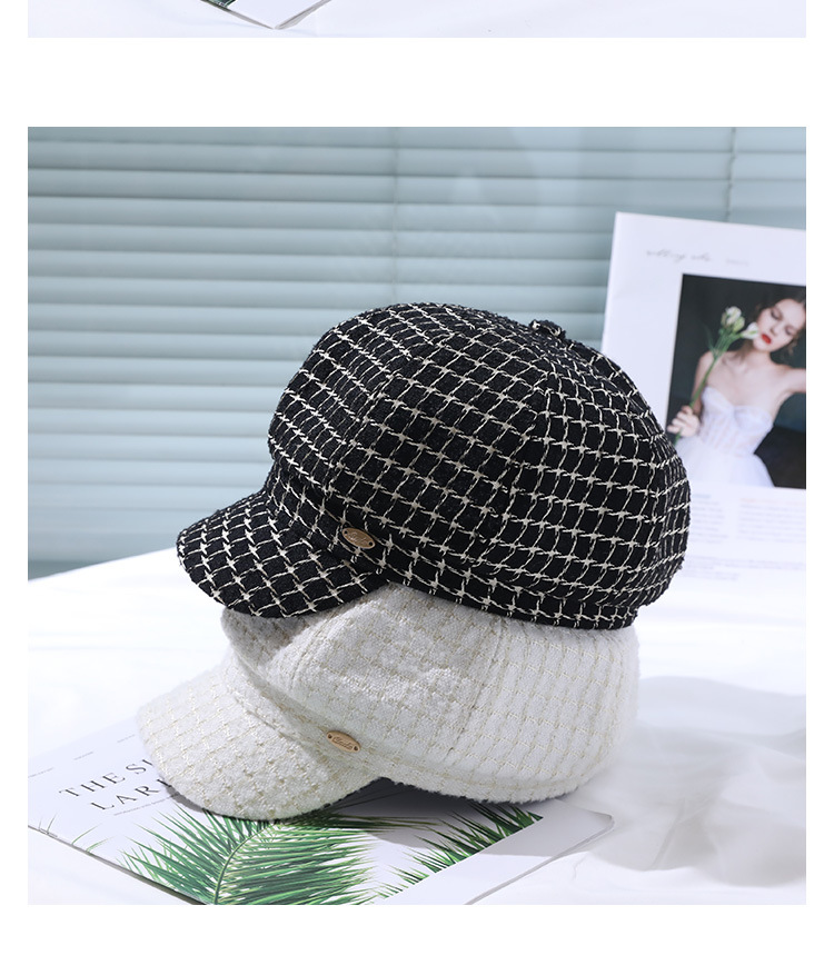 모자 여성의 가을과 겨울 새로운 패션 패션 모자 우아한 영국 복고풍 격자 무늬 클래식 샤넬 스타일 팔각형 모자