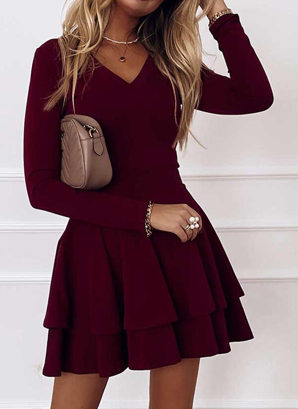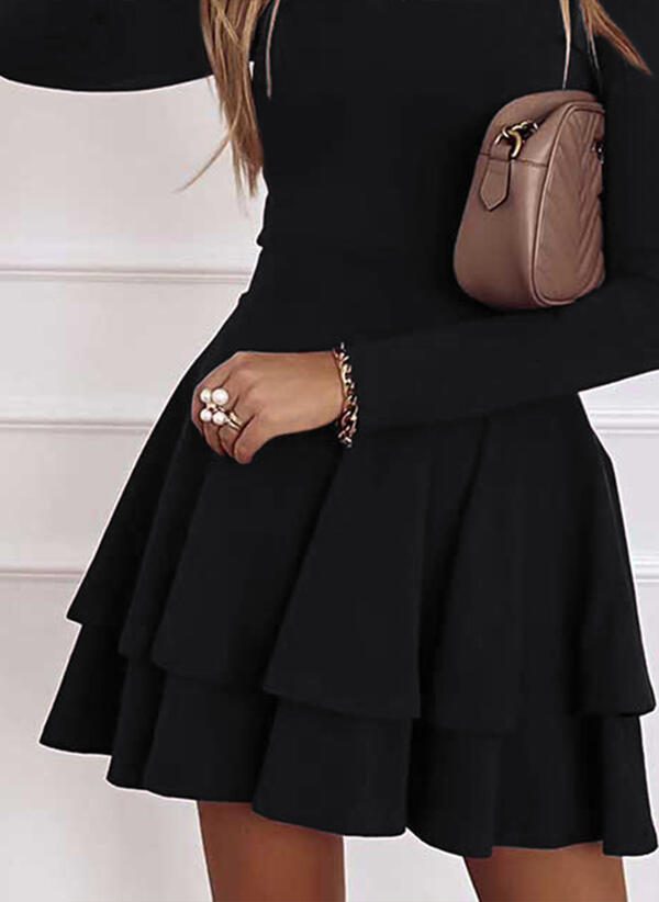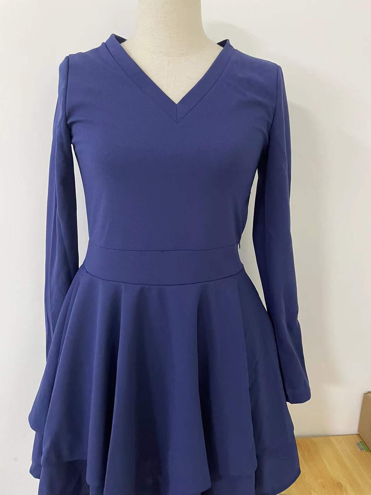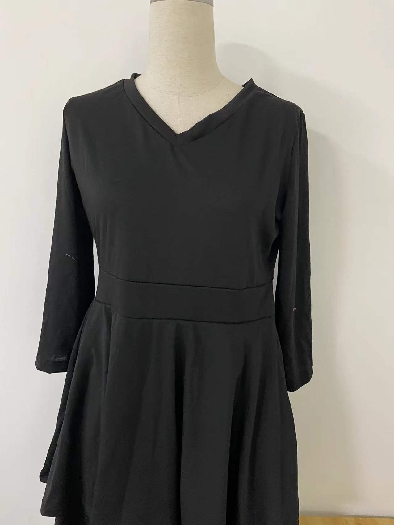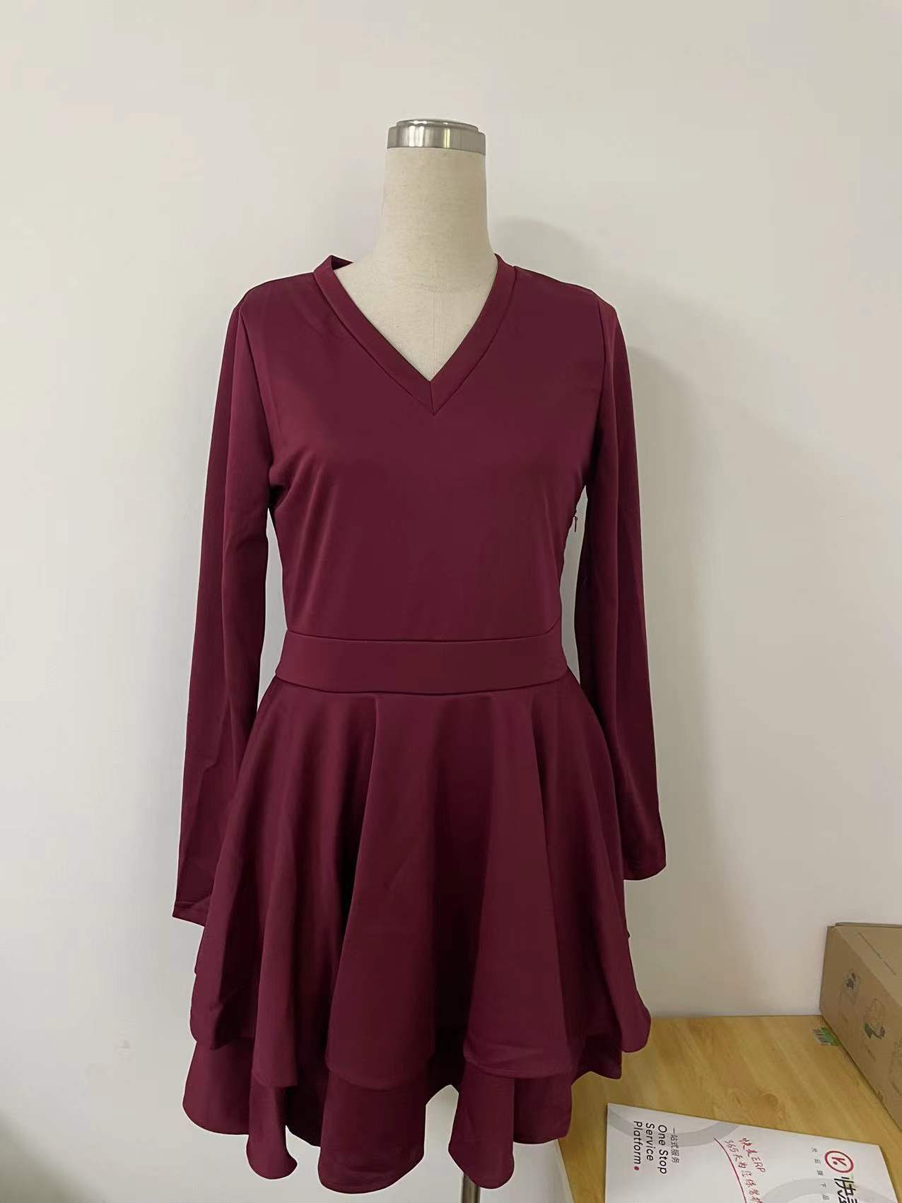 2022 독립 역 가을 새로운 솔리드 컬러 스트리트 유행 허리 풀오버 바느질 밑단 여성의 긴 소매 원피스