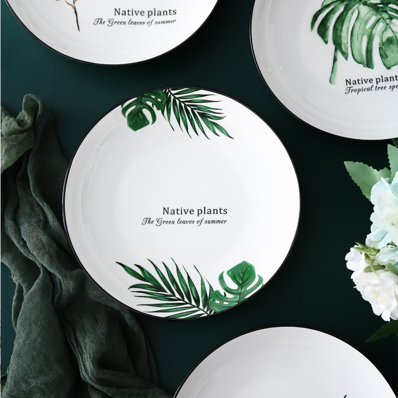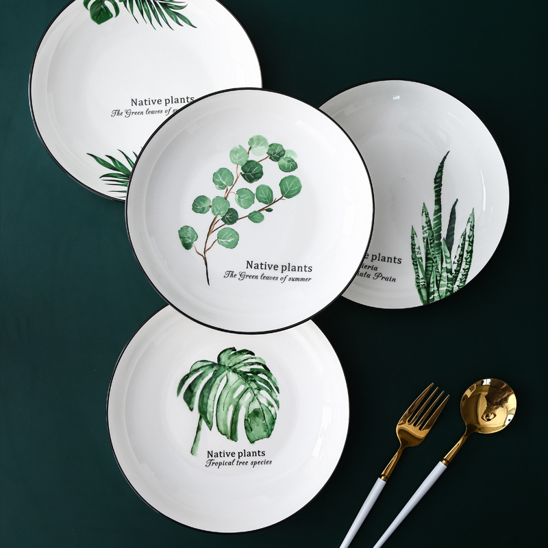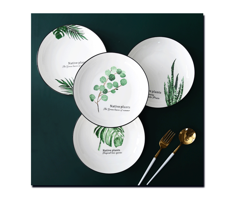북유럽 스타일 접시 세트 가정용 식기 4 인 조합 고정 로고가있는 유럽식 세라믹 접시 그릇 선물 상자
