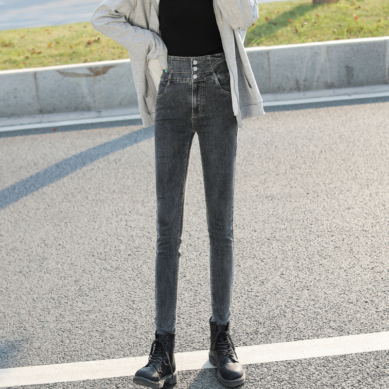 슈퍼 하이 웨이스트 청바지 여성용 슬림 룩 키 큰 2021 새로운 봄과 가을 슬림 핏 스트레치 꽉 연필 바지