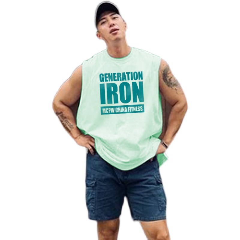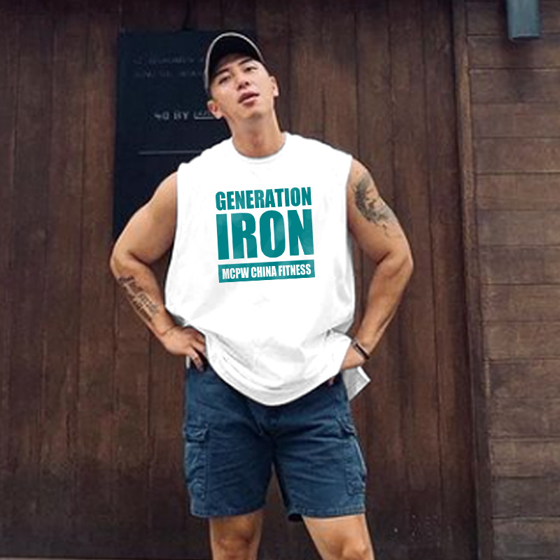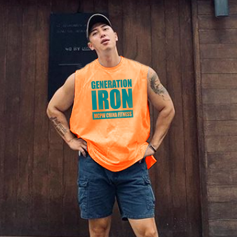 MCW 스포츠 민소매 티셔츠 남성 피트니스 조끼 땀 흡수성 장비 훈련 의류 철 탑 프린트 양복 조끼 패션