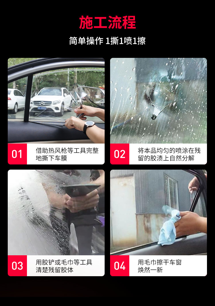 자동차 필름 접착제 제거제 유리 오래된 필름 접착제 제거제 태양 필름 강한 접착제 제거제 자체 접착 접착제 제거제