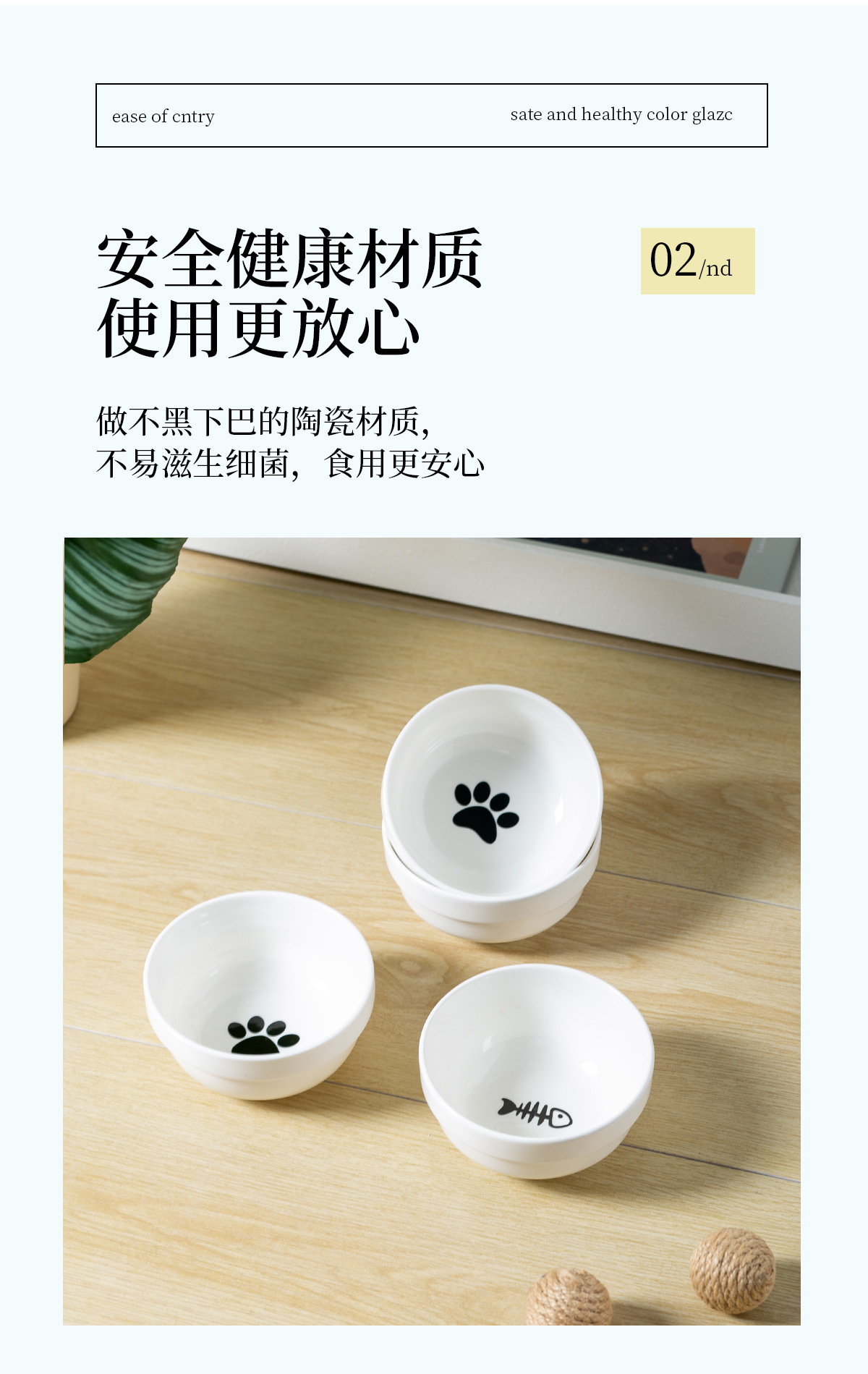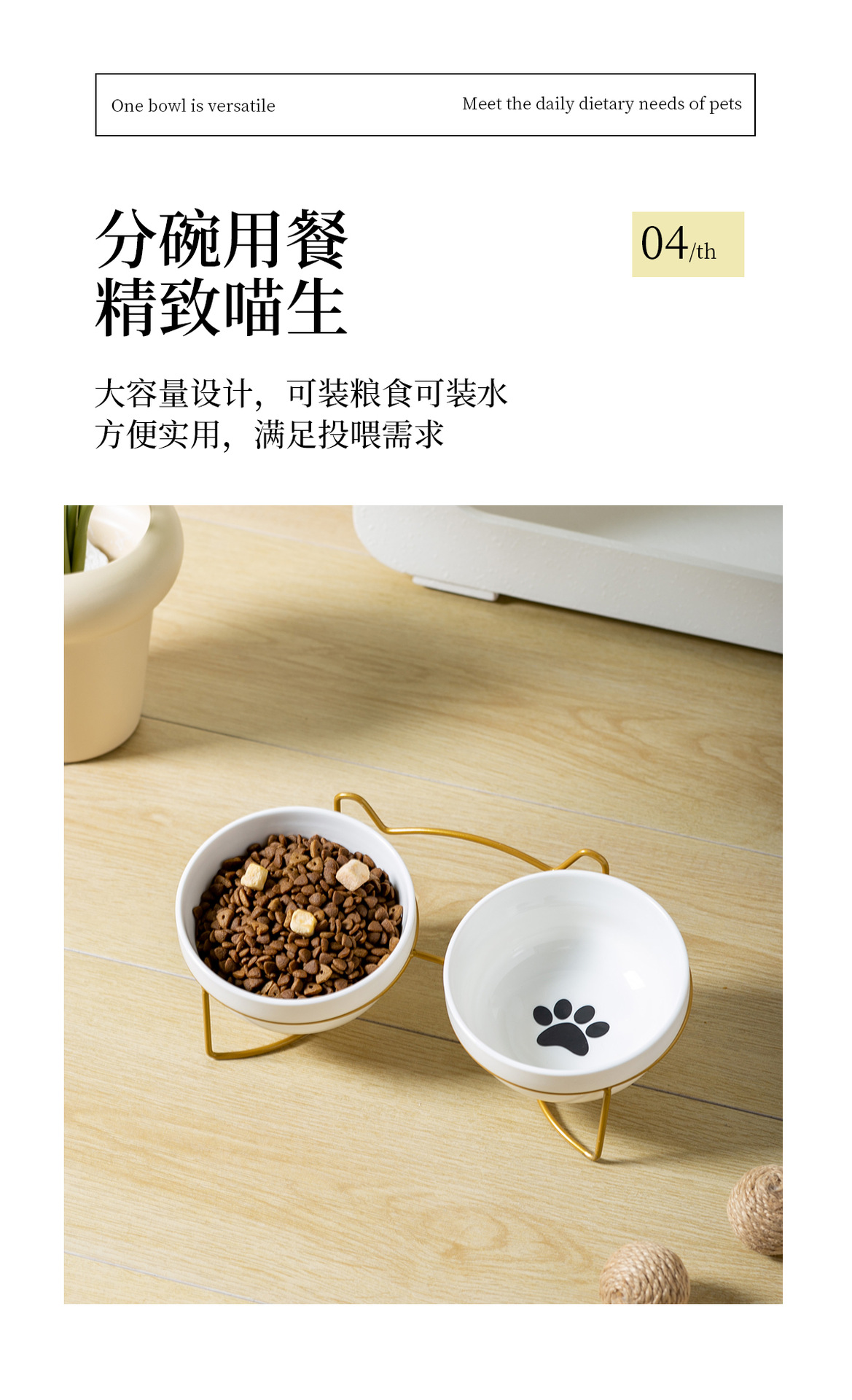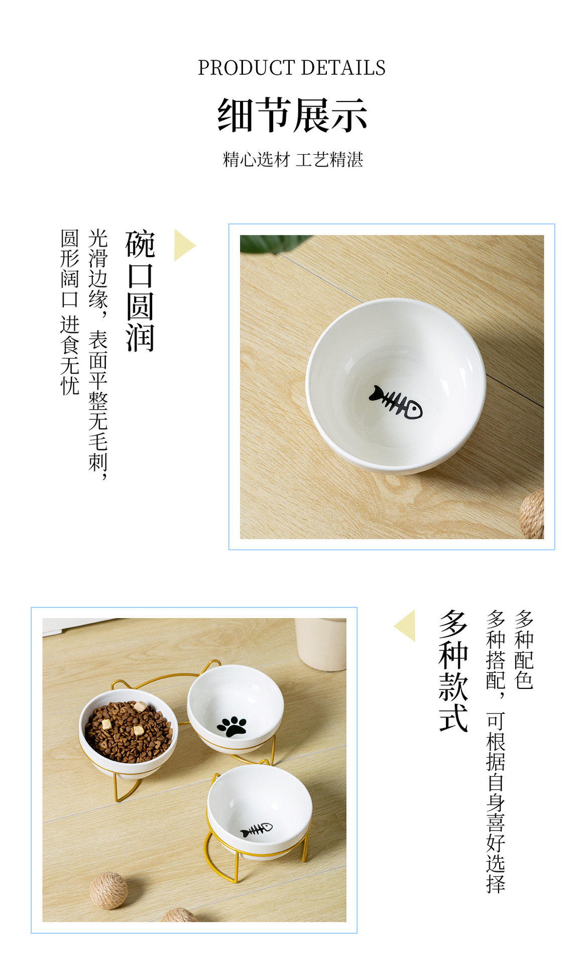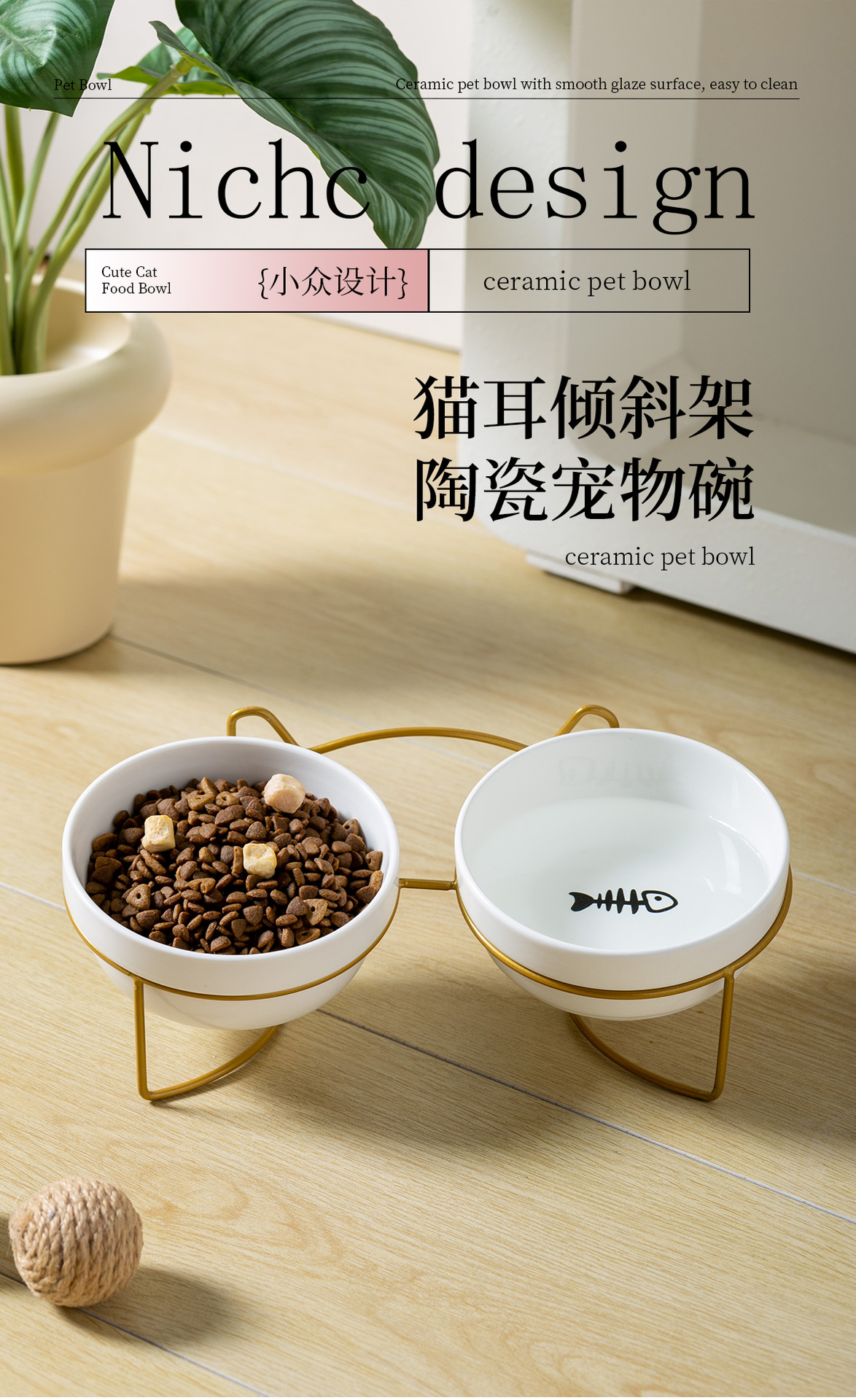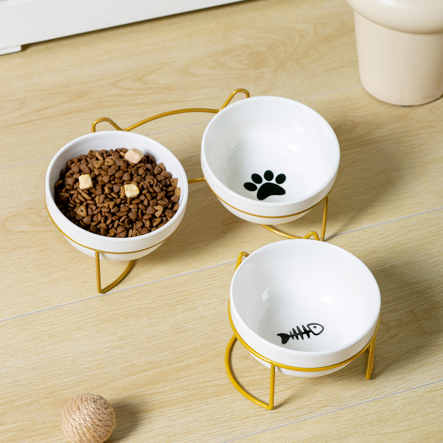 순백색 도자기 그릇 [생선뼈 + 고양이 발톱] + 더블 [금철 프레임 - 고양이 귀]