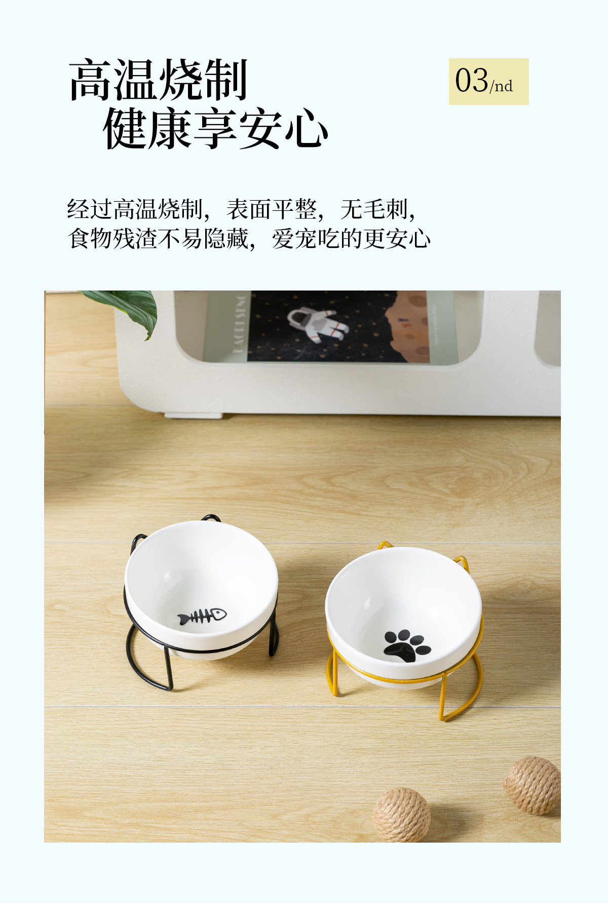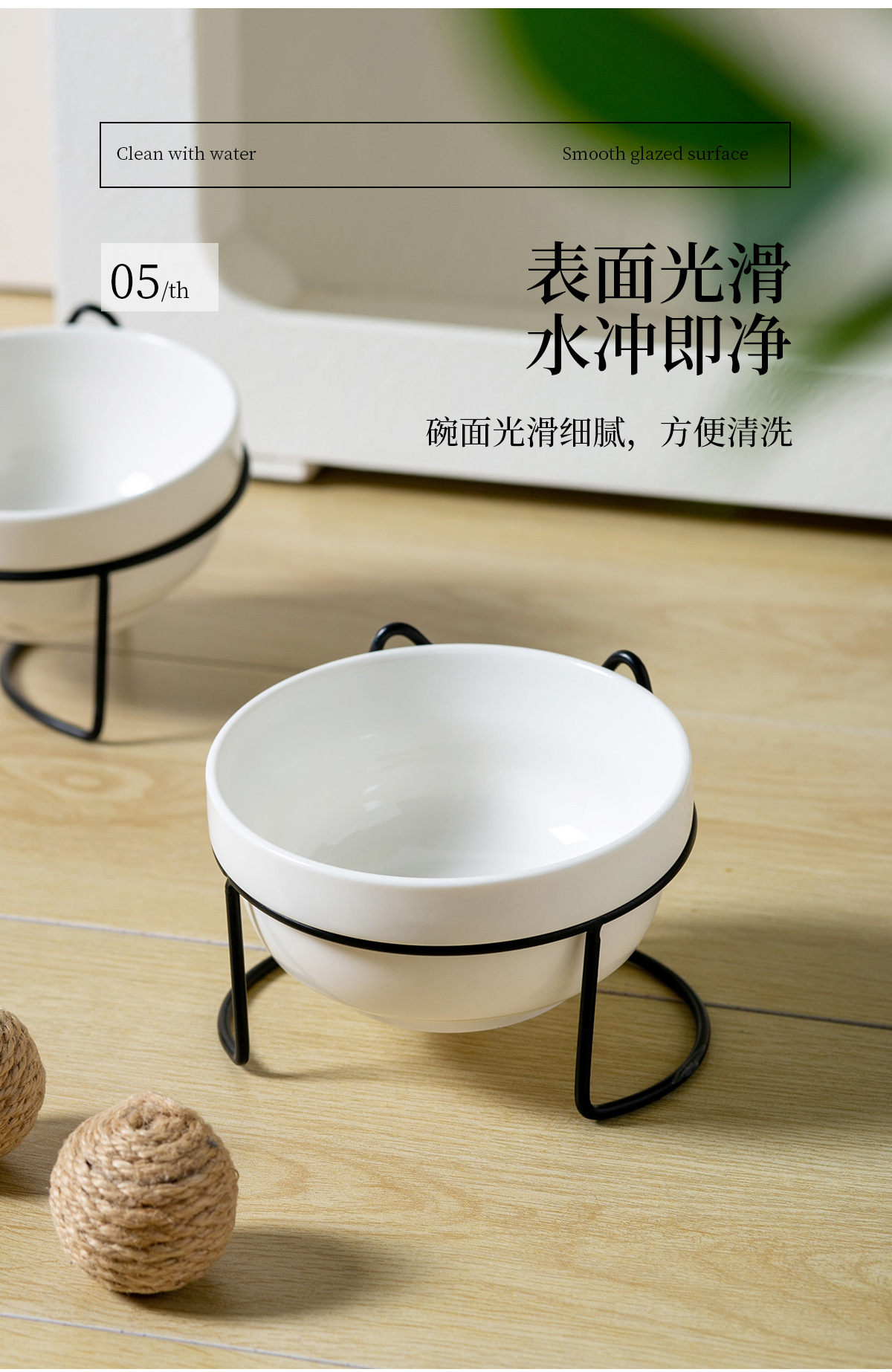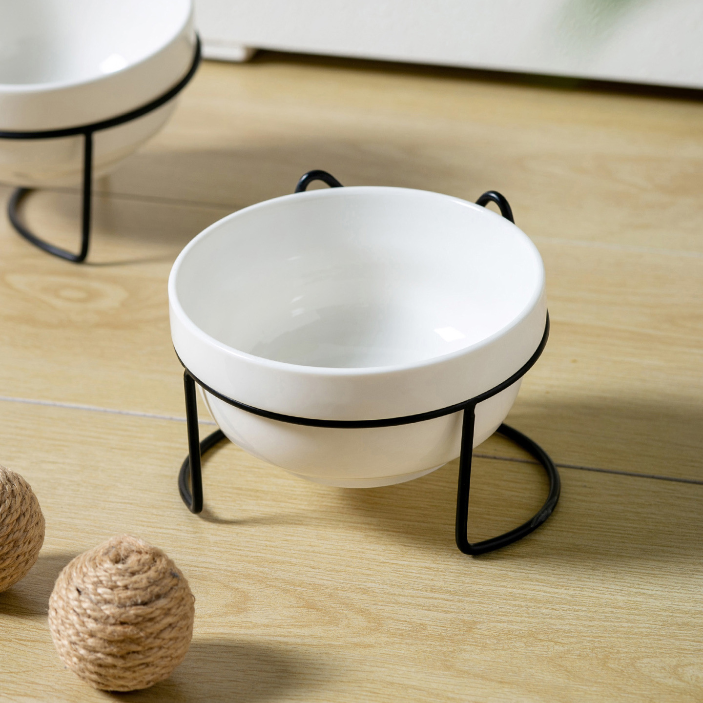 순백색 도자기 밥그릇 + 단품 [금속 거치대 - 고양이 귀]