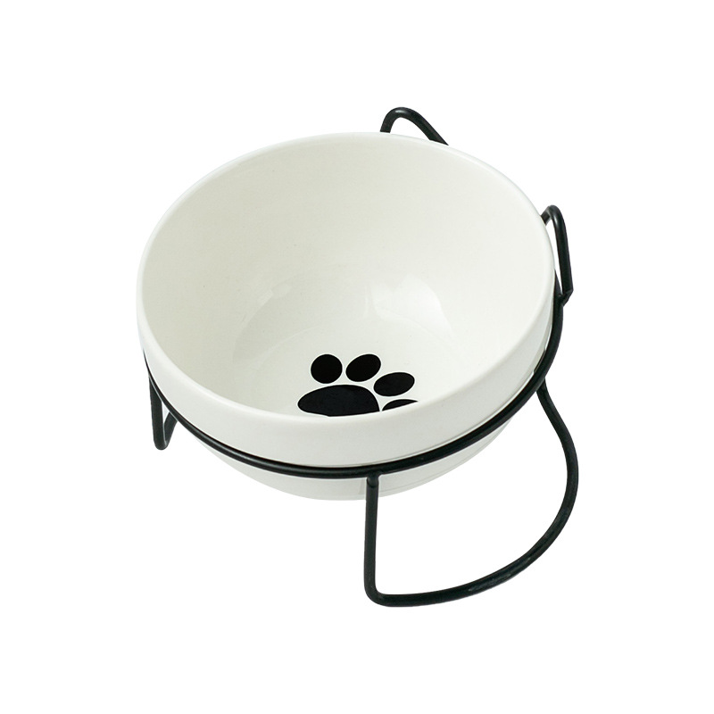 순수한 흰색 세라믹 그릇 [fishbone 2] 더블 [검은 철 프레임-고양이 귀]]