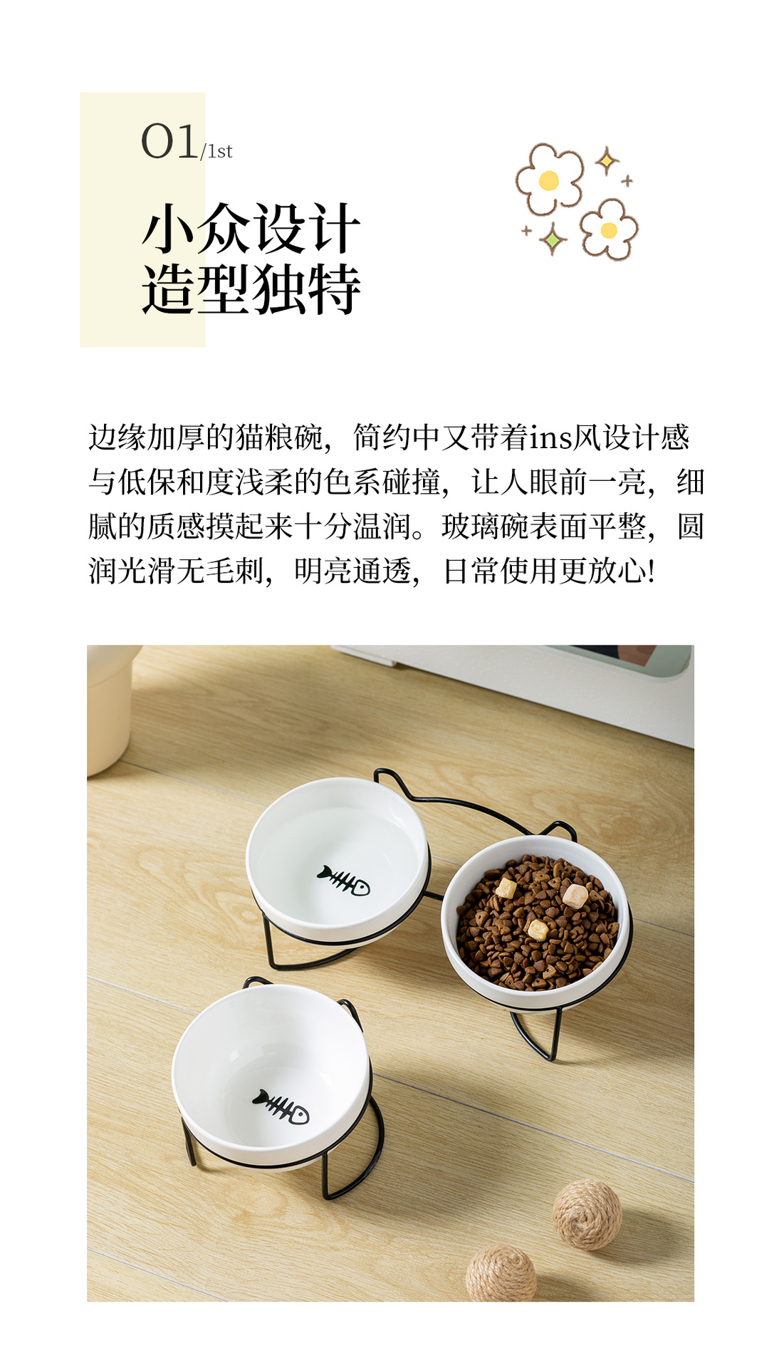 순백색 고양이 발톱 생선뼈 그릇 + 고양이 귀 철제 프레임