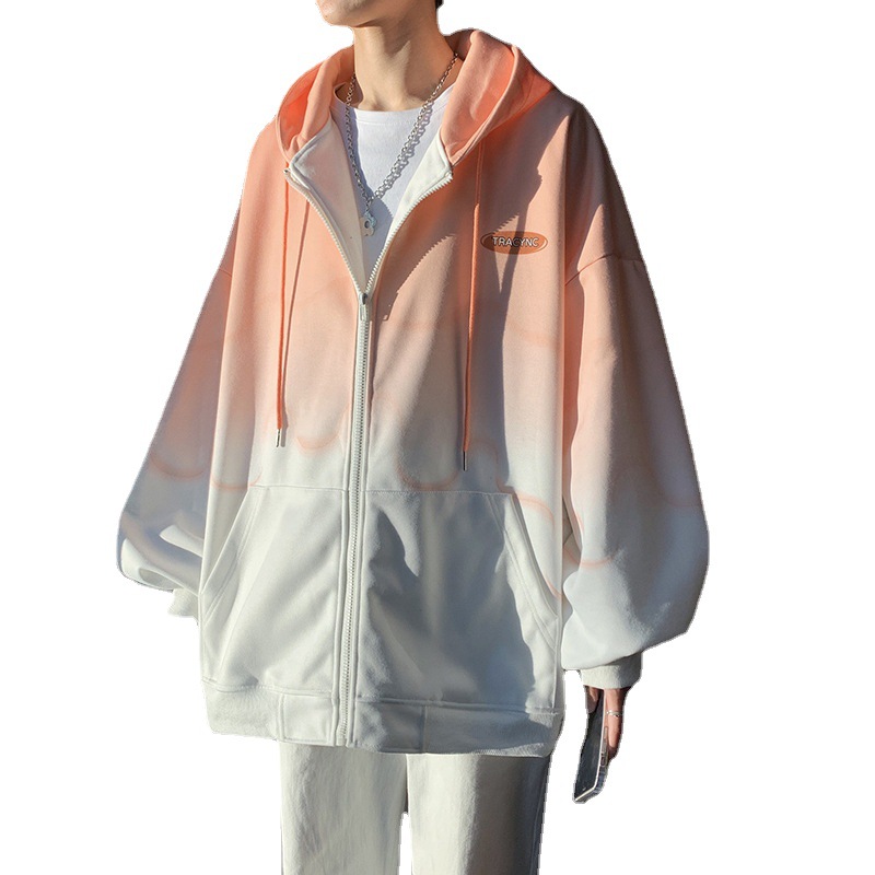 타이 염색 스웨터 남성 후드 봄과 가을 유행 브랜드 점진적 변경 지퍼 카디건 재킷 홍콩 스타일 느슨한 유행 탑