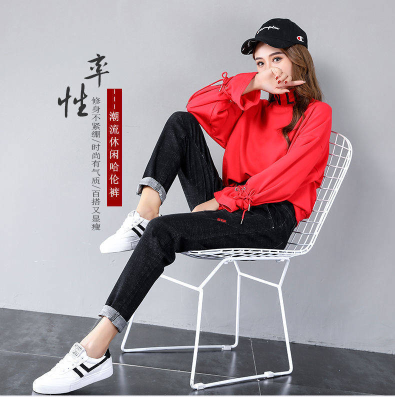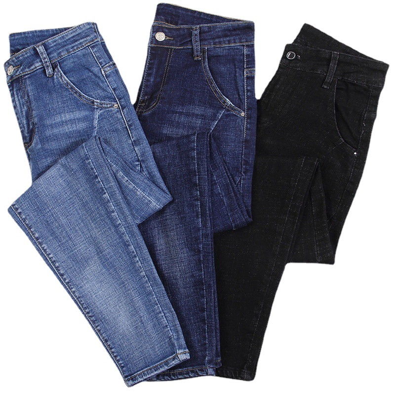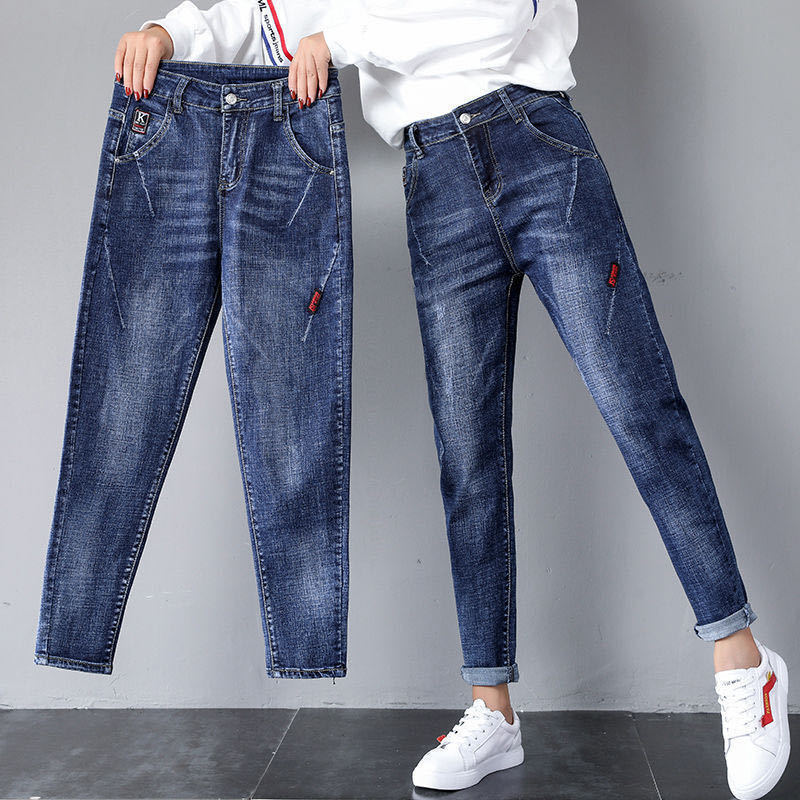 새로운 스트레치 진 여성의 트렌디 한 봄과 가을 여성의 한국 스타일 하이 웨이스트 유행 데님 작은 다리 와이드 레그 캐주얼 바지