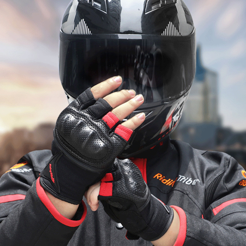 오토바이 전기 자전거 타기 장갑 미끄럼 방지 통기성 손바닥 내마모성 반 손가락 여름 승마 오토바이 라이더 장갑