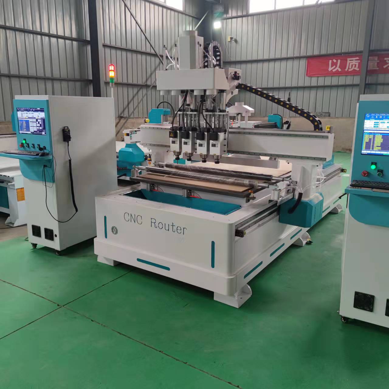 완전 자동 3단계 재단기 및 조각기, 이중 자동 공구 교환, 진공 흡착 테이블, CNC 재단